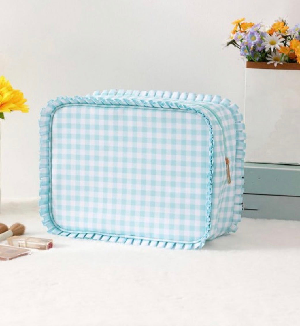 Nylon Gingham Pouch With Ruffe Edges