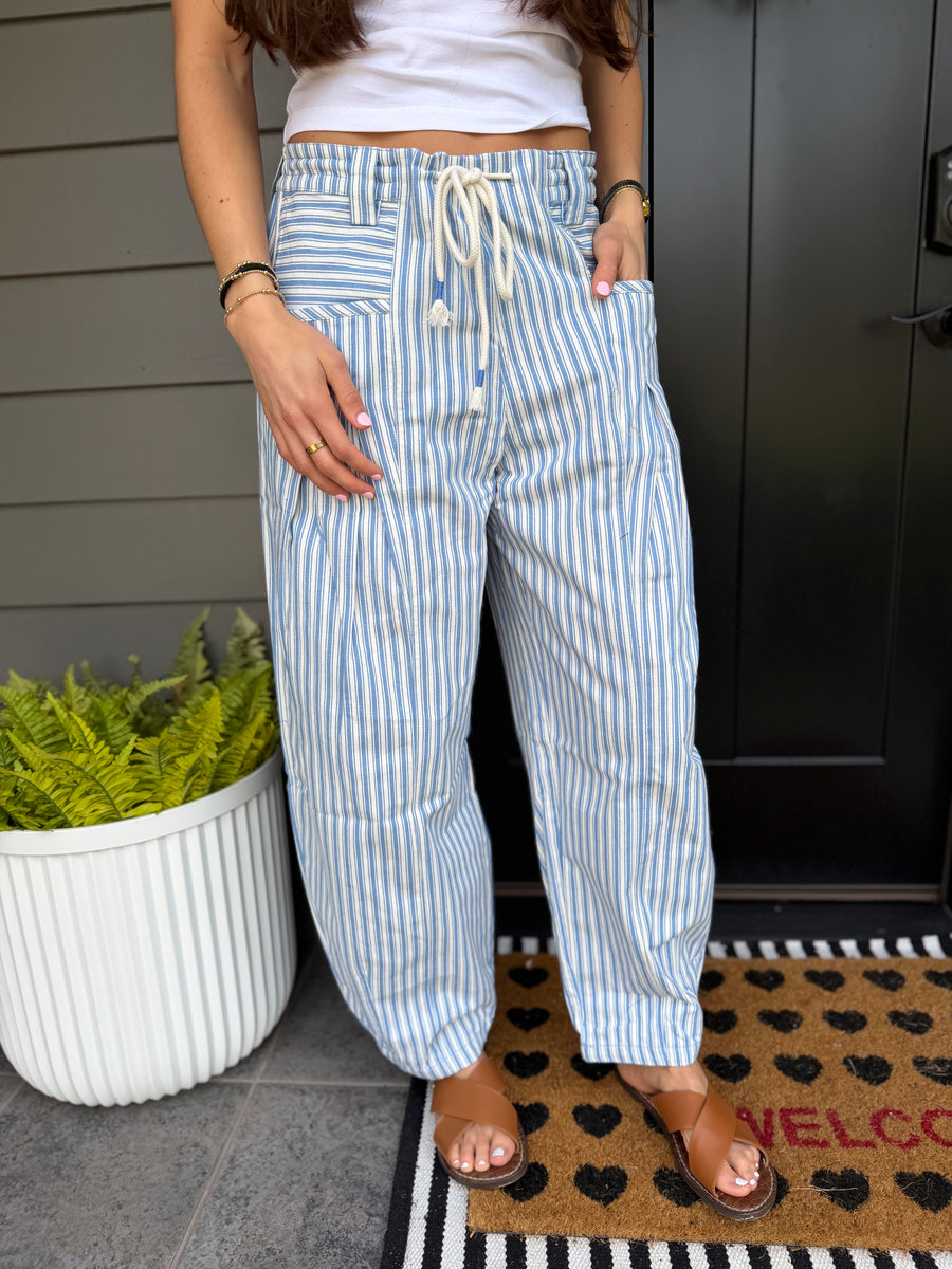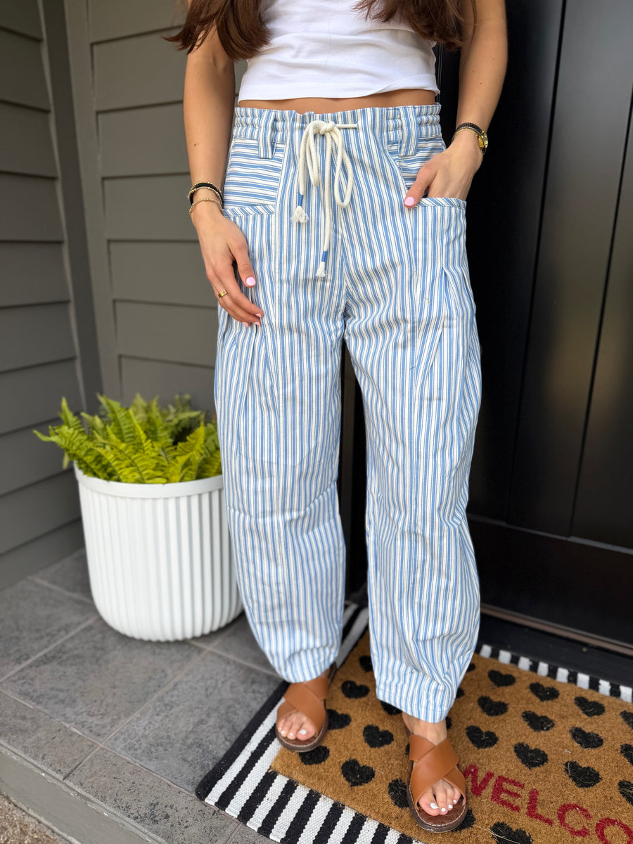 Elevate your casual style with the 90065 light blue stripe barrel jeans. The relaxed fit and unique stripe design provide comfort and a fresh look, making them perfect for everyday wear or weekend outings. Enjoy a blend of style and ease with these versatile jeans.