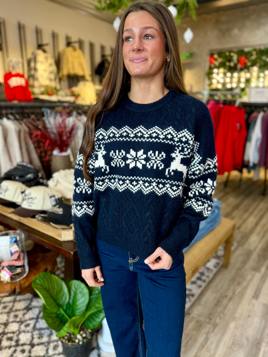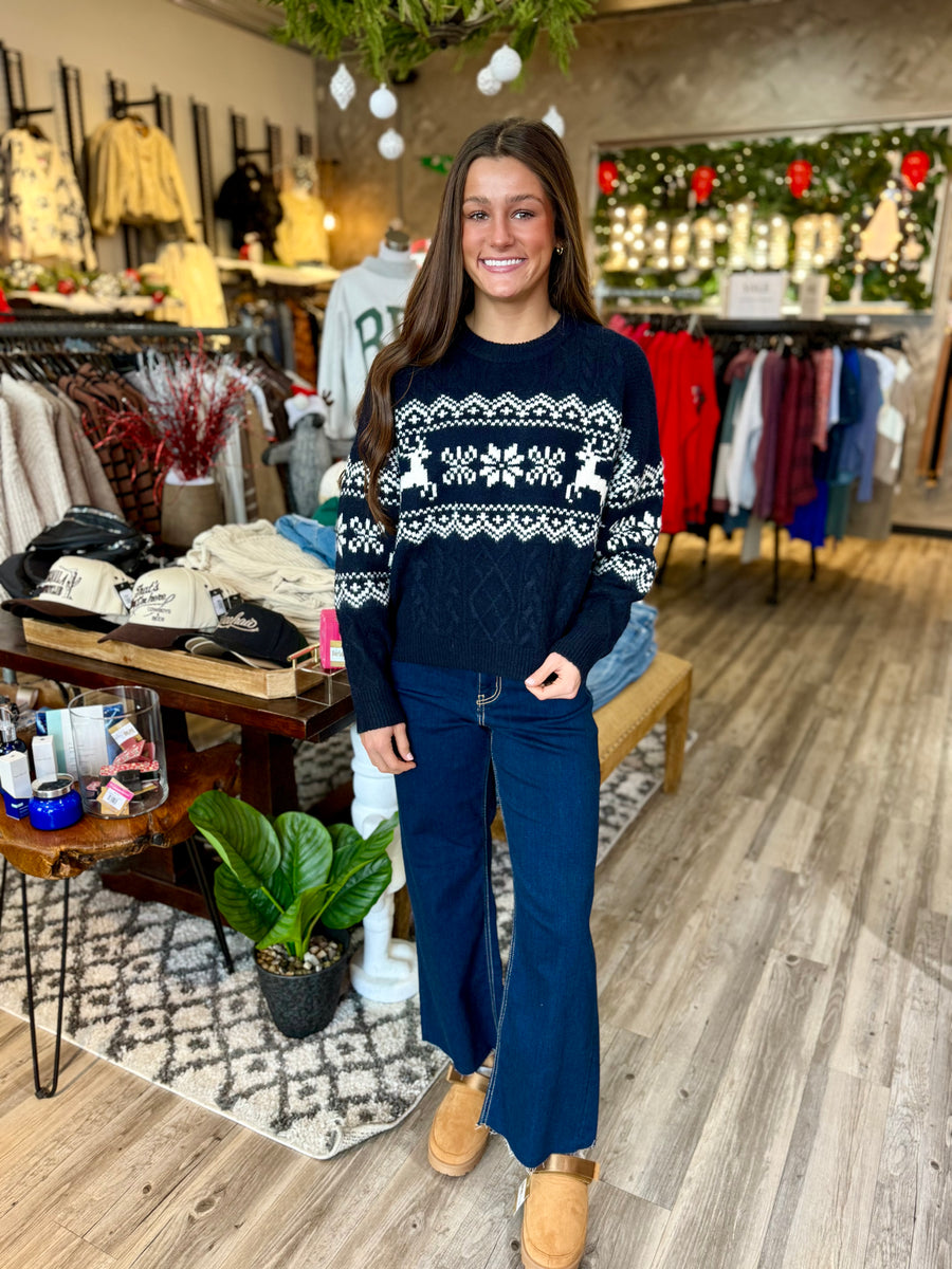 Stay cozy and stylish this holiday season with our Navy Blue Christmas Pullover Sweater. Made with high-quality materials, this sweater is designed to provide a comfortable and true-to-size fit. Perfect for any festive occasion, this sweater is a must-have for your wardrobe.