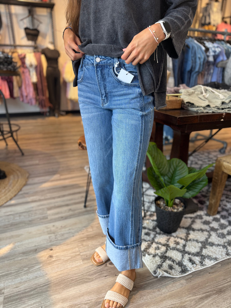 Elevate your style with our 6515 jeans! These super high rise cuffed baggy jeans feature an 11" rise and 28" inseam for a flattering fit. With a 21" opening and a 5" cuff, they're perfect for showing off your favorite shoes. Plus, the stretchy fabric ensures all-day comfort. Get ready to rock these jeans!