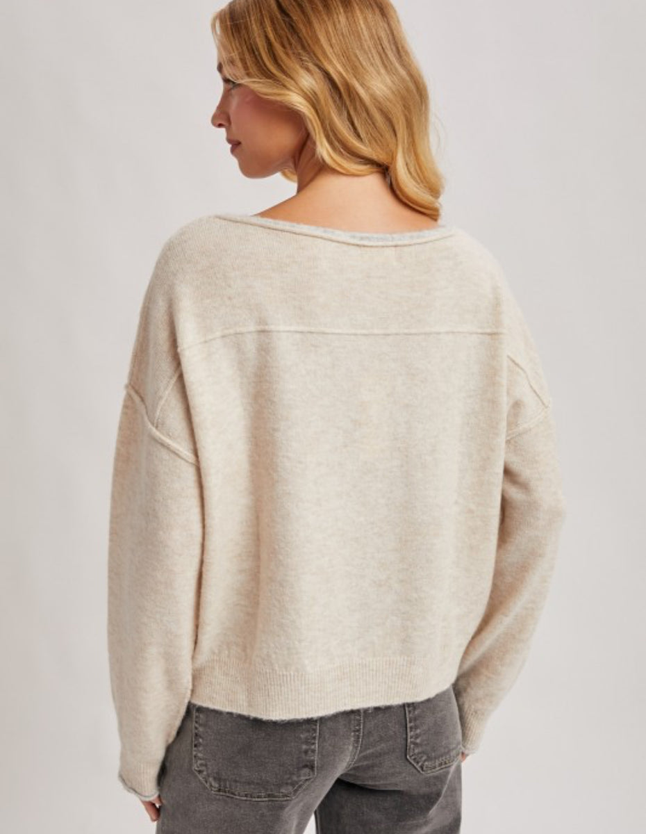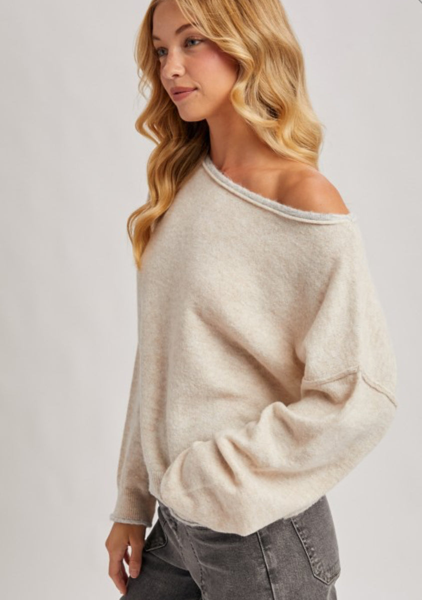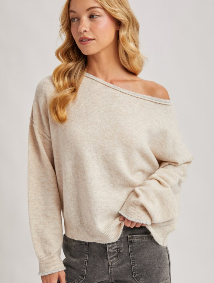 Stay stylish and comfortable with our Ivory Boat Neck Sweater! This versatile piece features a flattering boat neck, accented with a sleek gray trim. Designed to fit true to size and can even be worn off the shoulder. Perfect for any fashion-forward wardrobe.