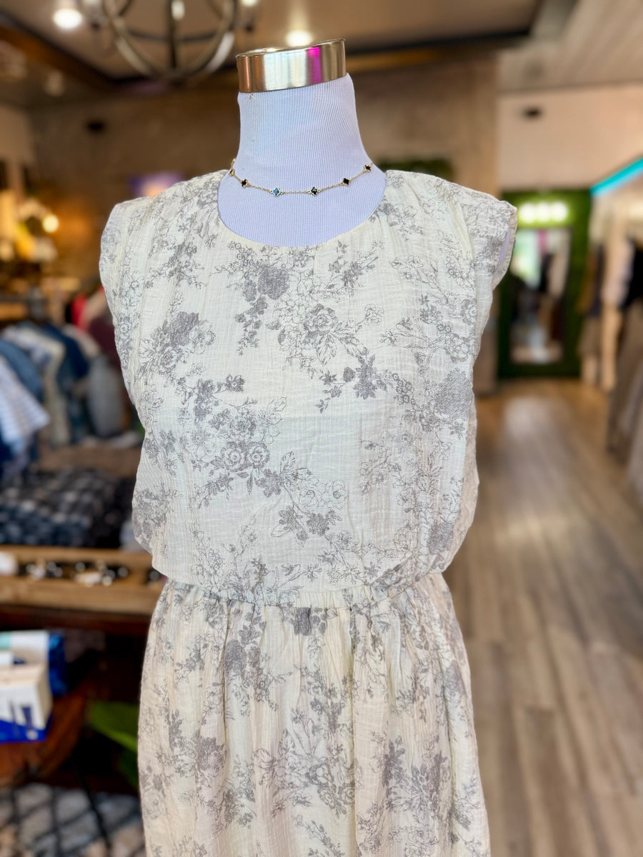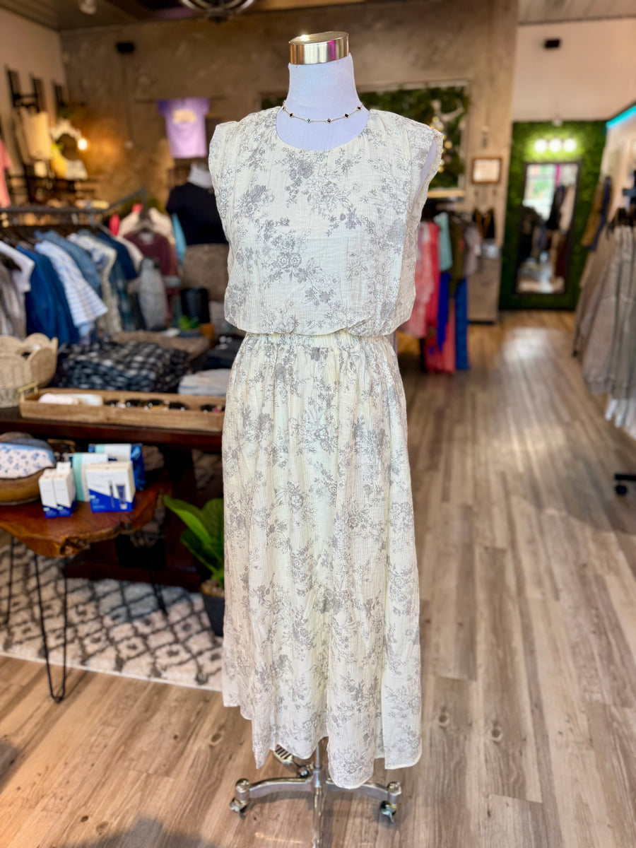 Cream floral balloon hem sleeveless cropped blouse. With matching set see item 1002-b. Fits true to size.