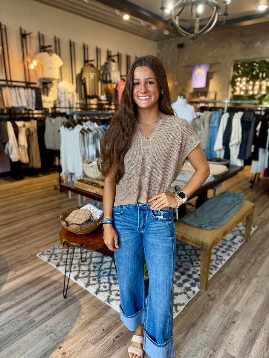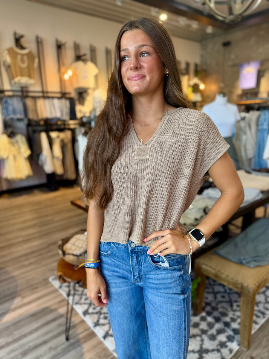 Effortlessly elevate your wardrobe with our 1057 short sleeve sweater. Featuring a stylish tan knotted slit neck design, this sweater is both comfortable and trendy. With a true to size fit, you'll never have to sacrifice comfort for fashion again.