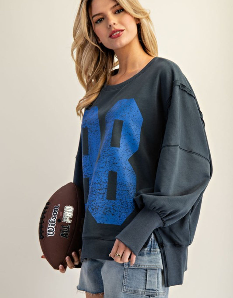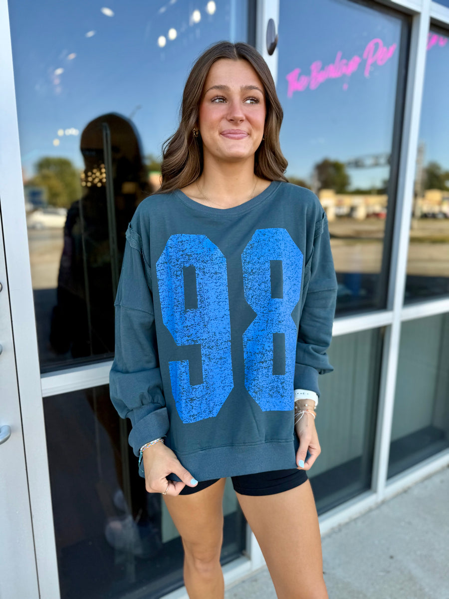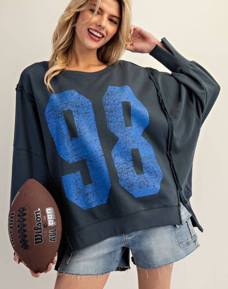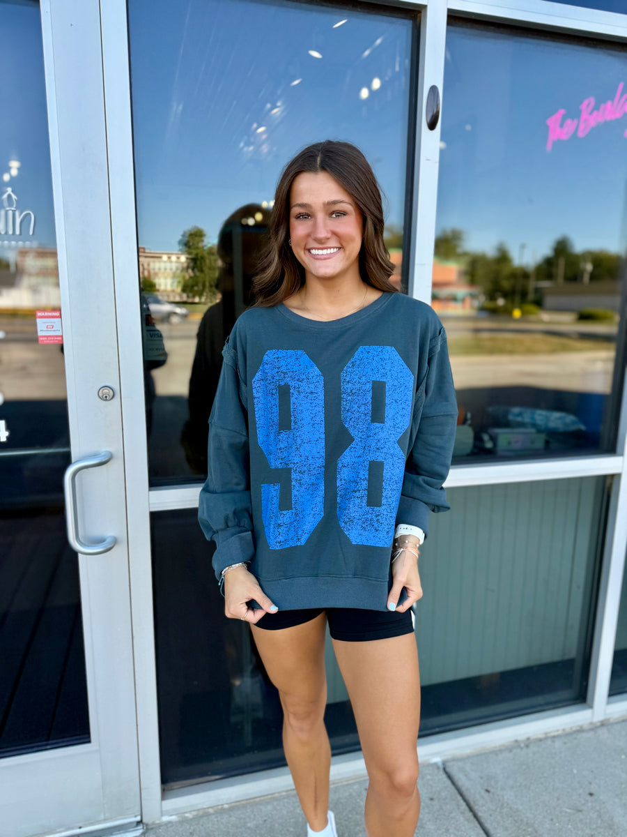 Upgrade your casual look with our Navy Blue Oversized Sweatshirt. Crafted with a royal blue 98 design, this sweatshirt offers both style and comfort. Stay cozy and stylish in this must-have wardrobe essential.