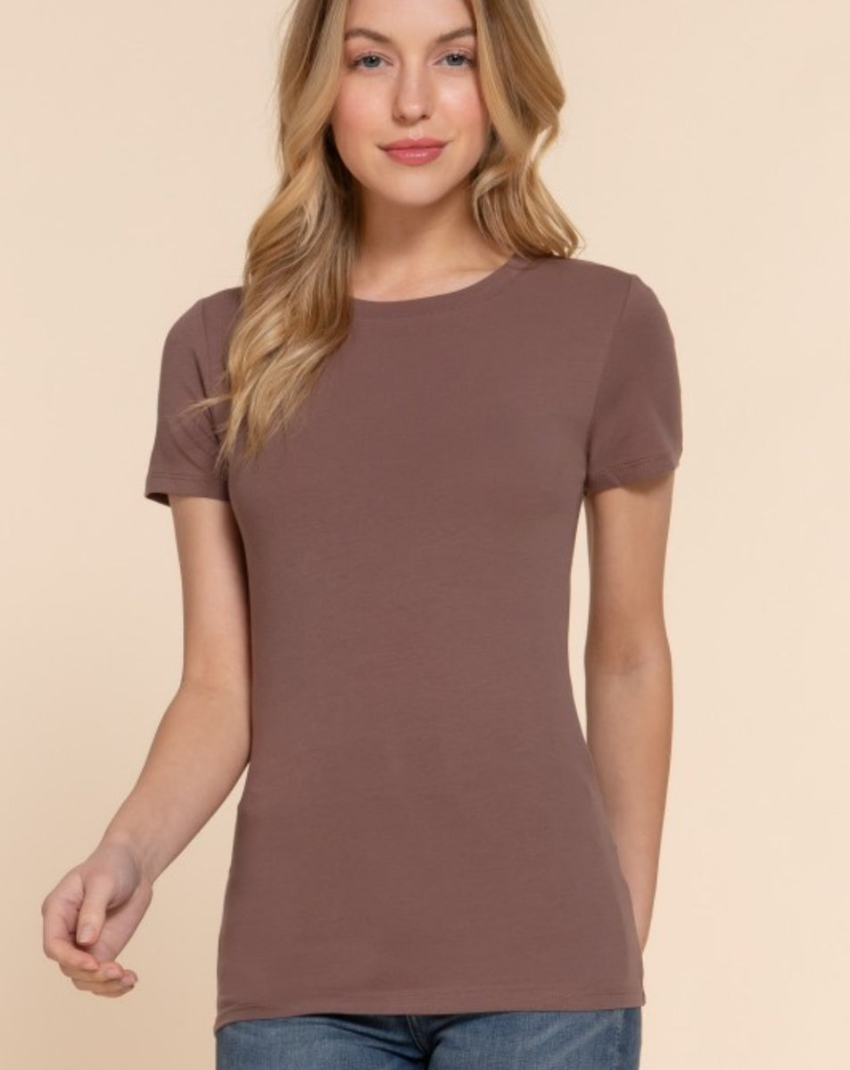 Stay comfortable and stylish with our 11733 short sleeve crew neck tee, available in gray, white, or mocha brown. Perfect for everyday wear, this tee is a versatile option that will elevate your wardrobe.