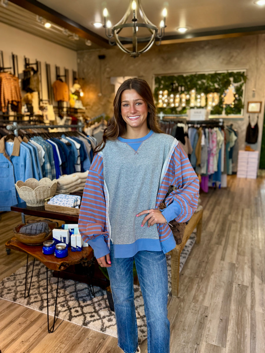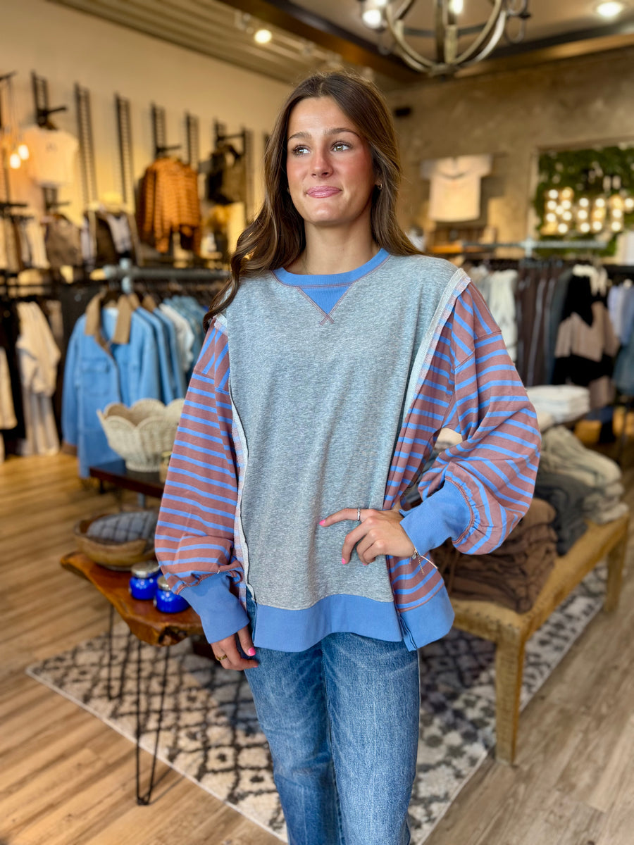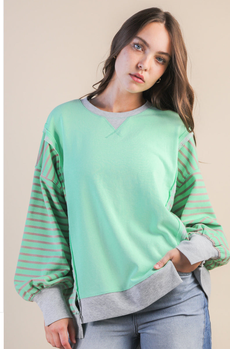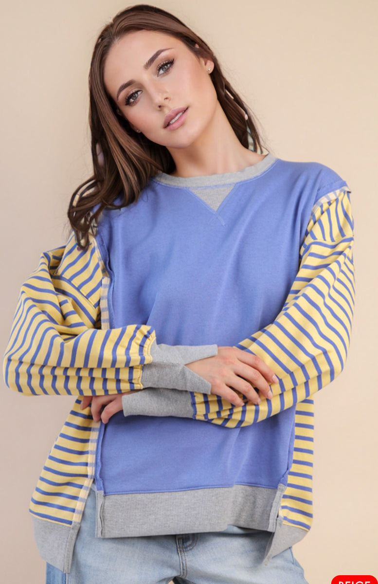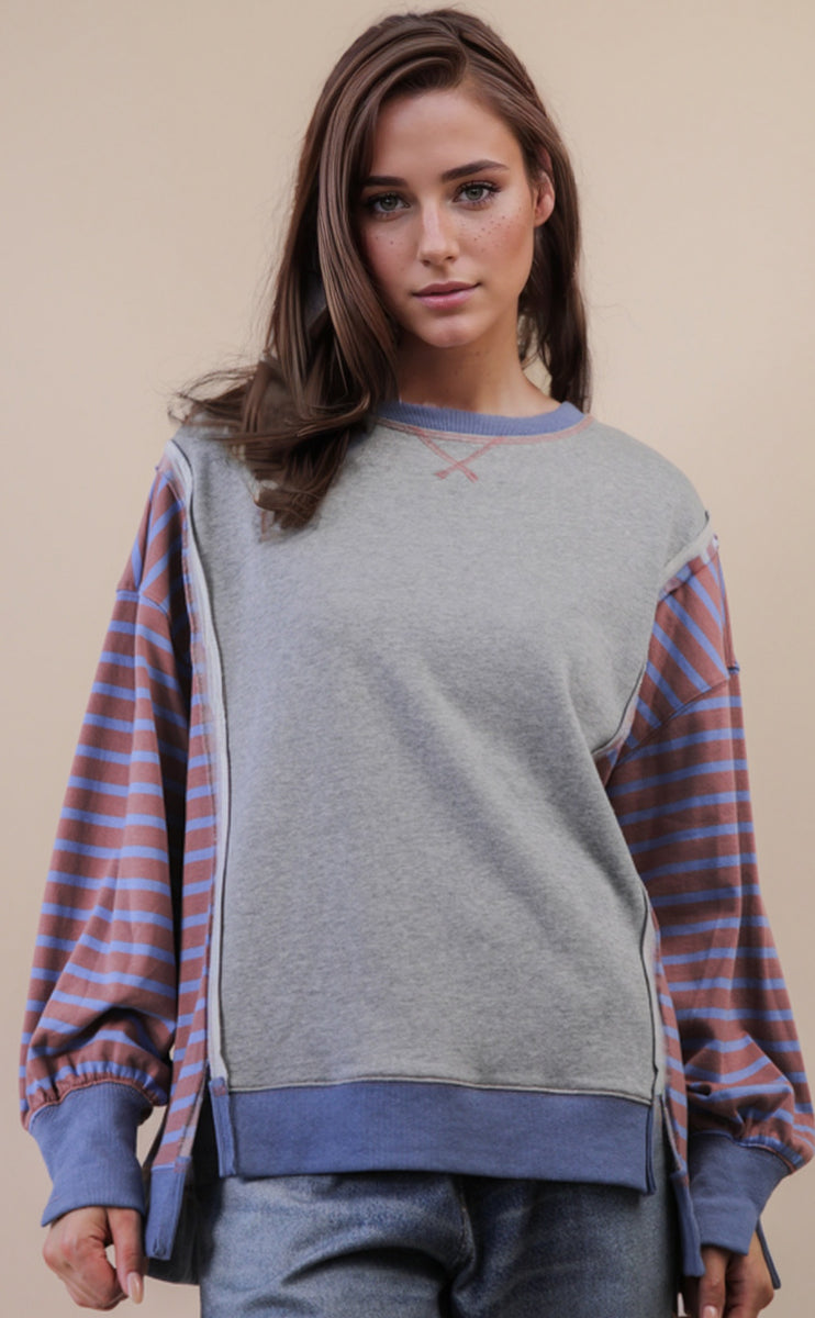 Effortlessly stylish and comfortable, the 1221 pullover features a relaxed fit and both solid and stripe accents. Stay relaxed yet trendy with this must-have addition to your wardrobe.