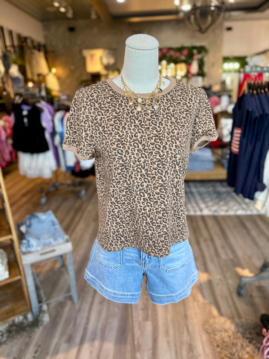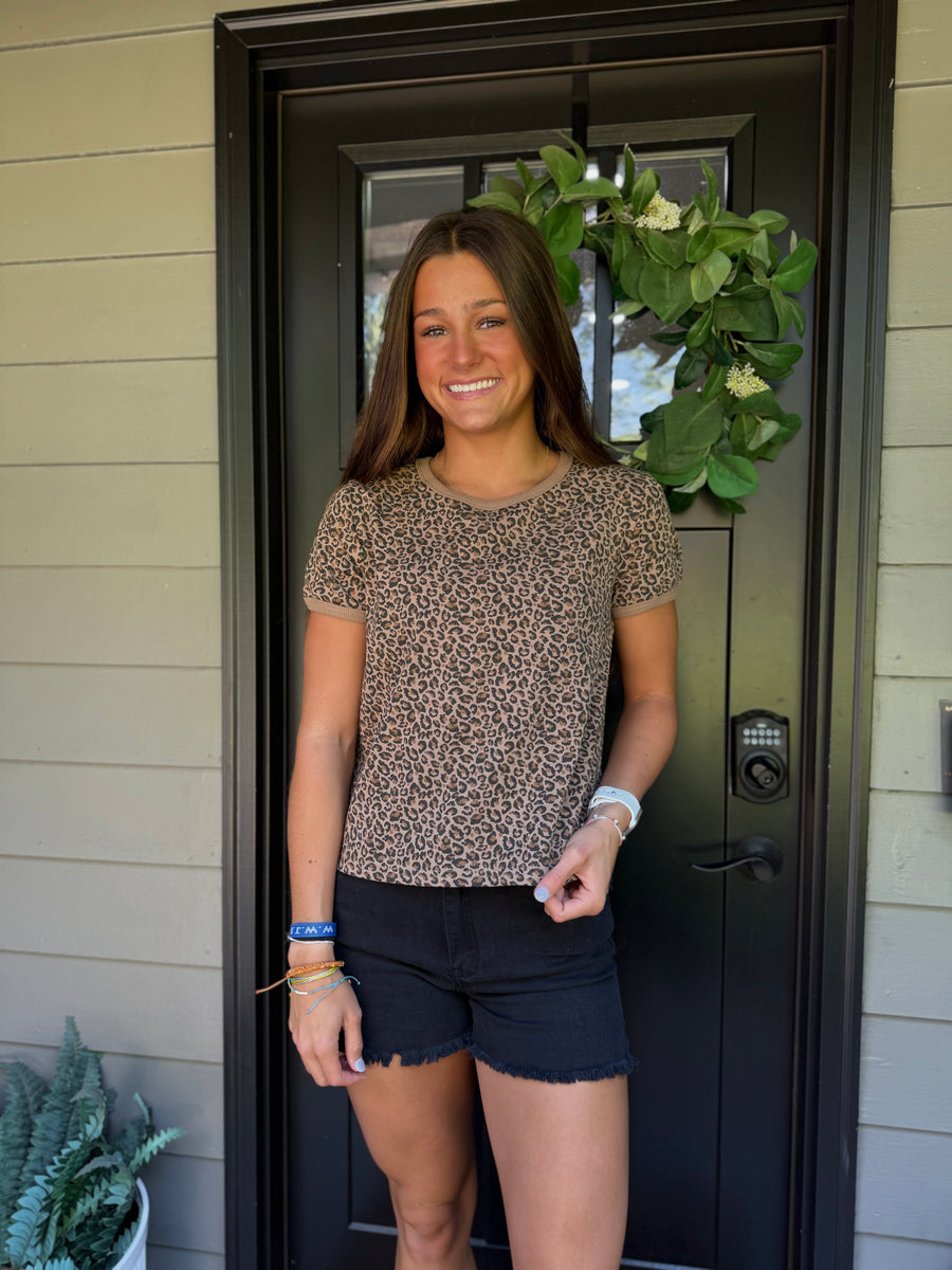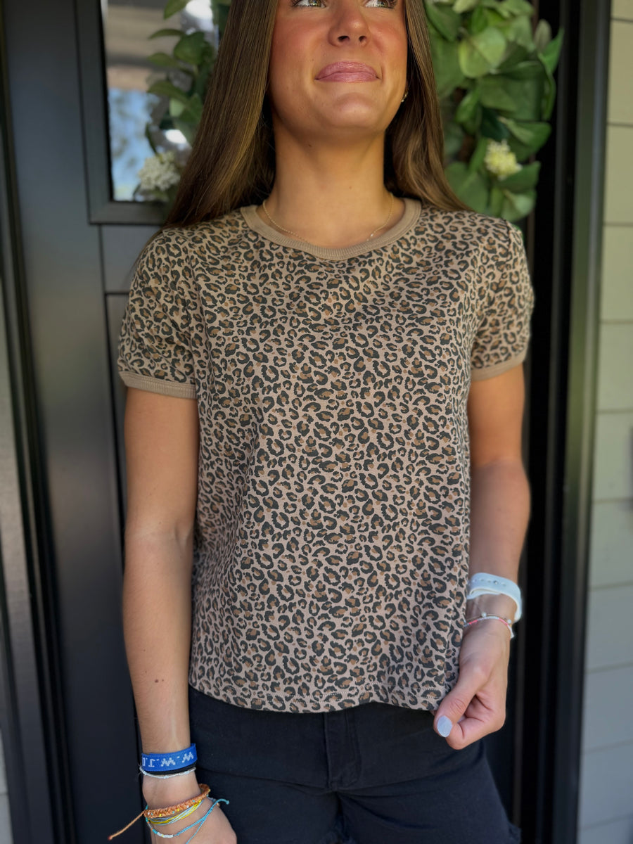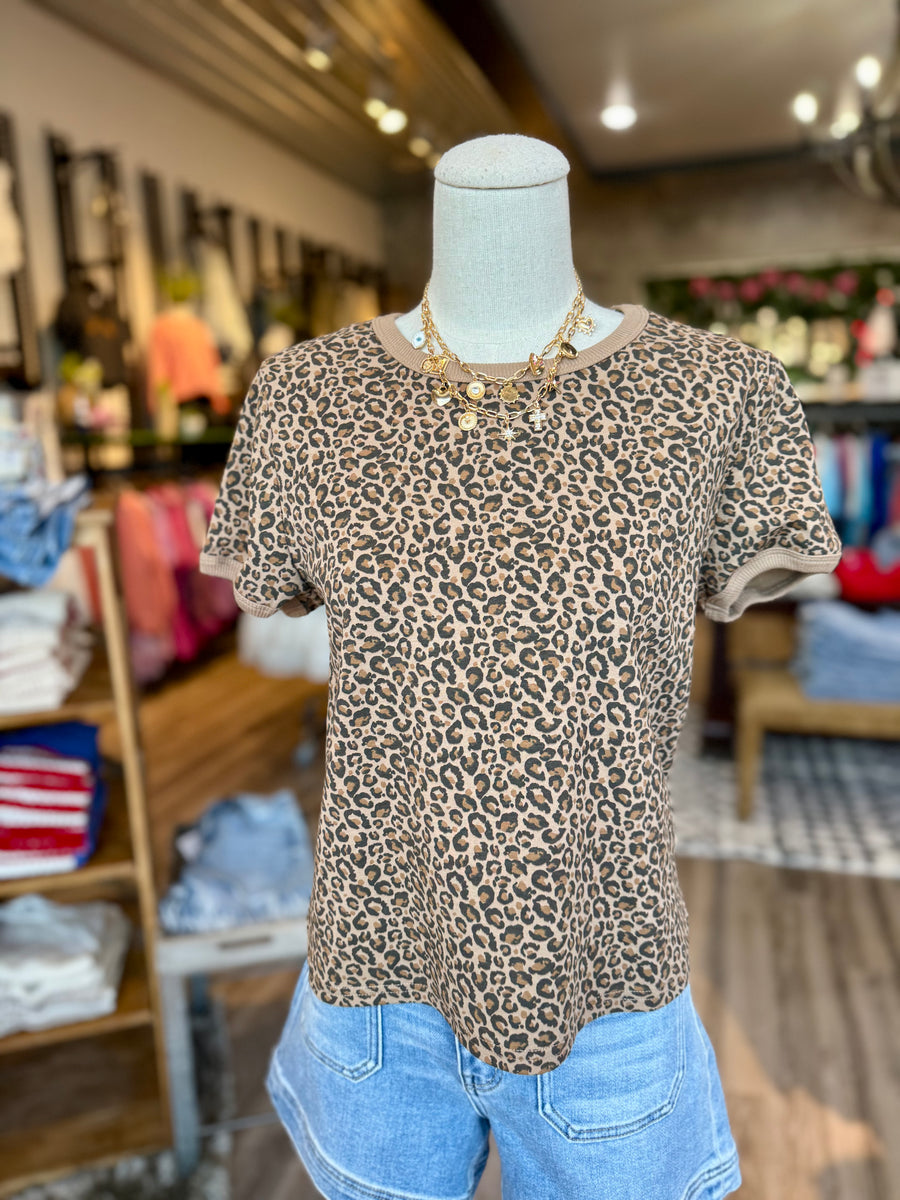 Be fierce in this leopard ringer tee! Designed to fit true to size, it's the perfect statement piece for any fashionista. Channel your wild side and rock this tee just like the model seen wearing it.