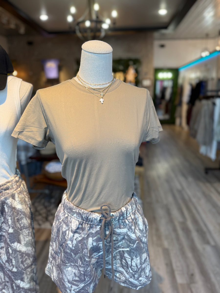 Enjoy ultimate comfort in our Warm Gray Super Soft Tee. Made with the softest material, this tee is perfect for lounging at home or running errands. Its warm gray color adds a touch of elegance to your everyday look. Say goodbye to uncomfortable tees and hello to pure comfort with this must-have shirt.