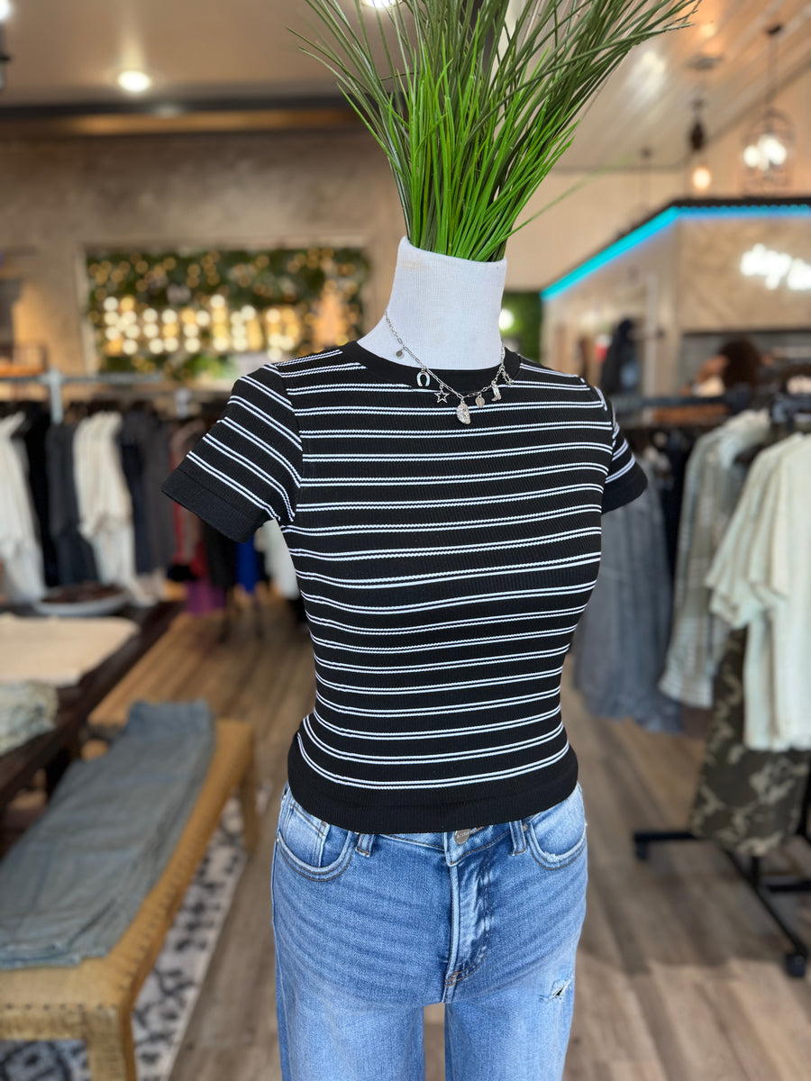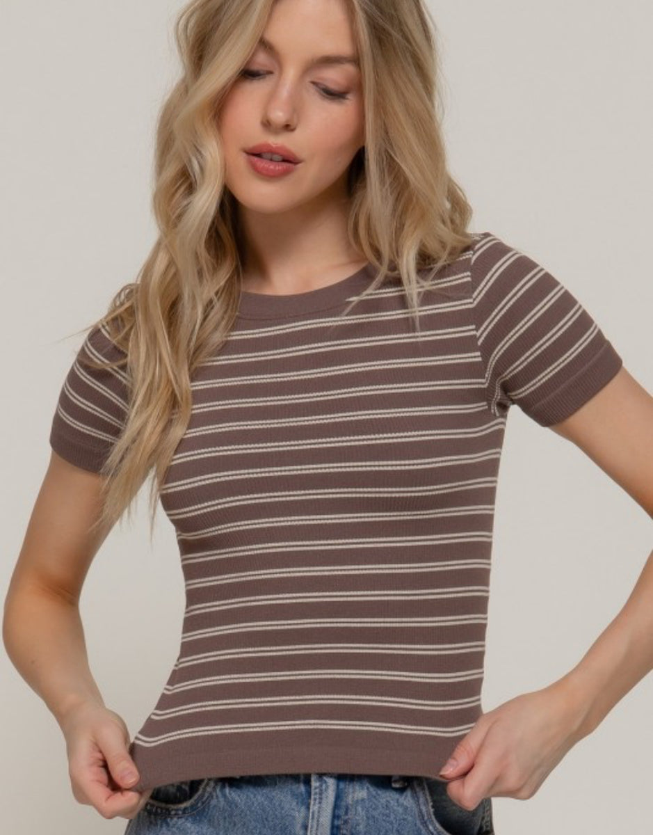 Stay stylish and comfortable with our Seamless Stripe Tee 14581. The stretchy fit and seamless design allow for maximum comfort and movement, while the classic stripe pattern comes in three versatile color options for effortless style. Upgrade your wardrobe today with the 14581 Seamless Stripe Tee.