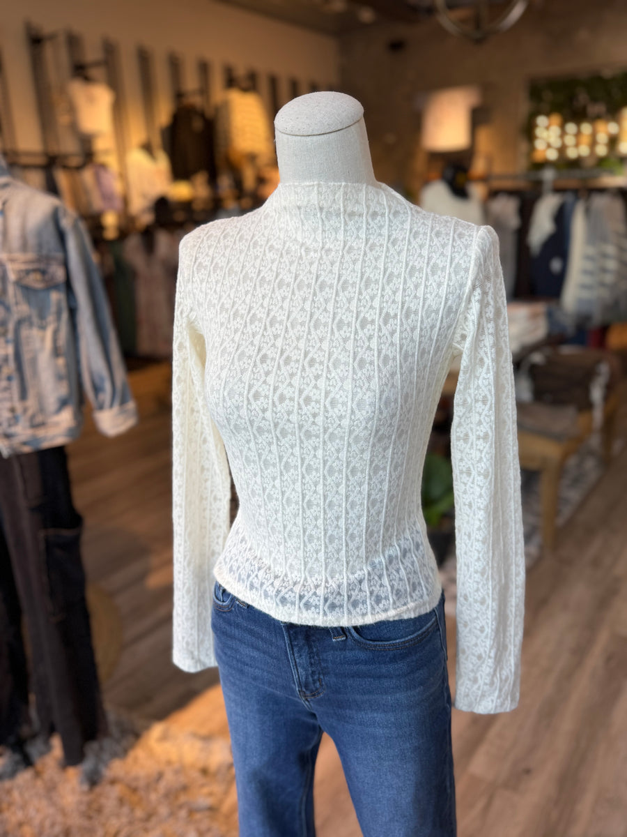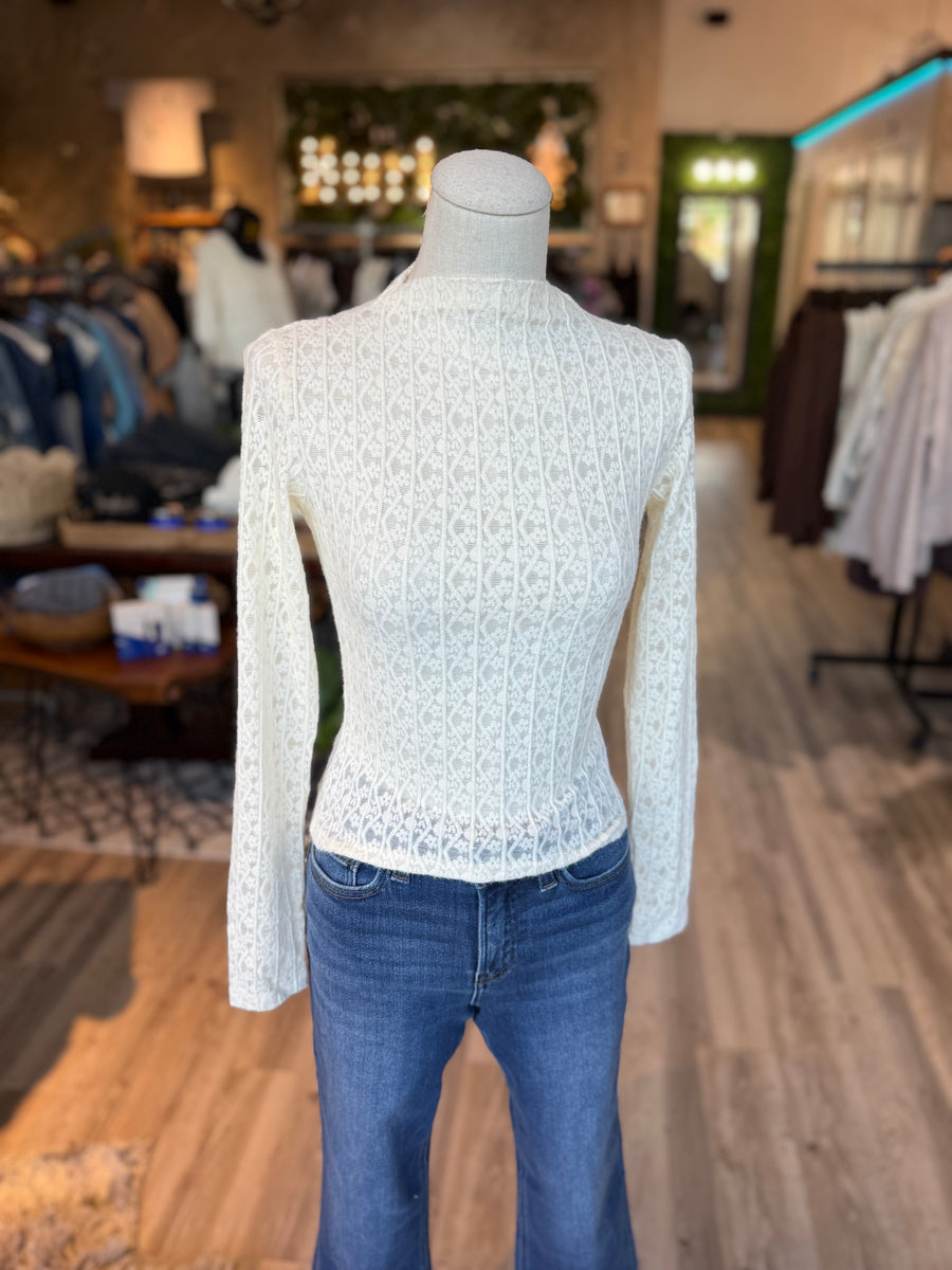 Effortlessly elegant, the 1917 top features delicate ivory lace and long sleeves for a timeless look. With a true-to-size fit, this top is perfect for any occasion.