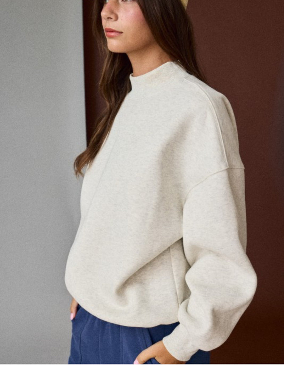 Stay cozy and comfortable in our Heather Gray or Green Mock Neck Sweatshirt. With its relaxed fit, this sweatshirt is perfect for any casual occasion. Choose from two stylish colors to fit your personal style.