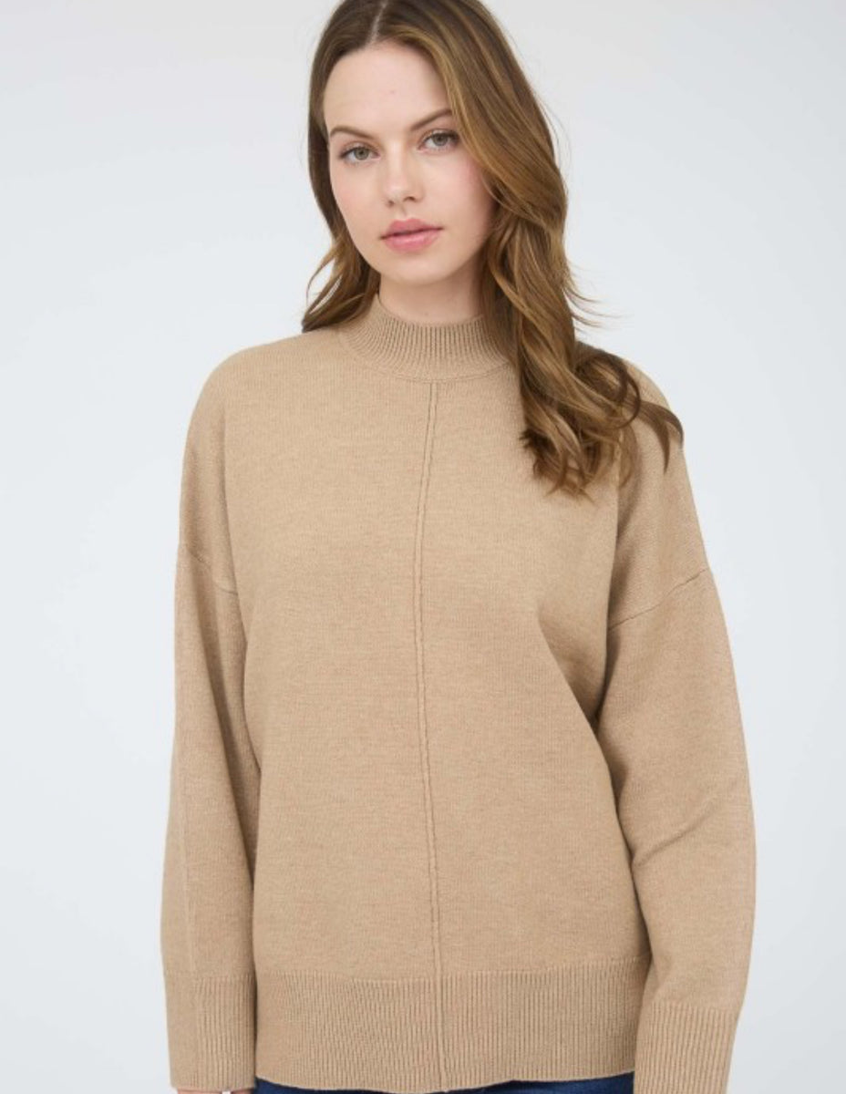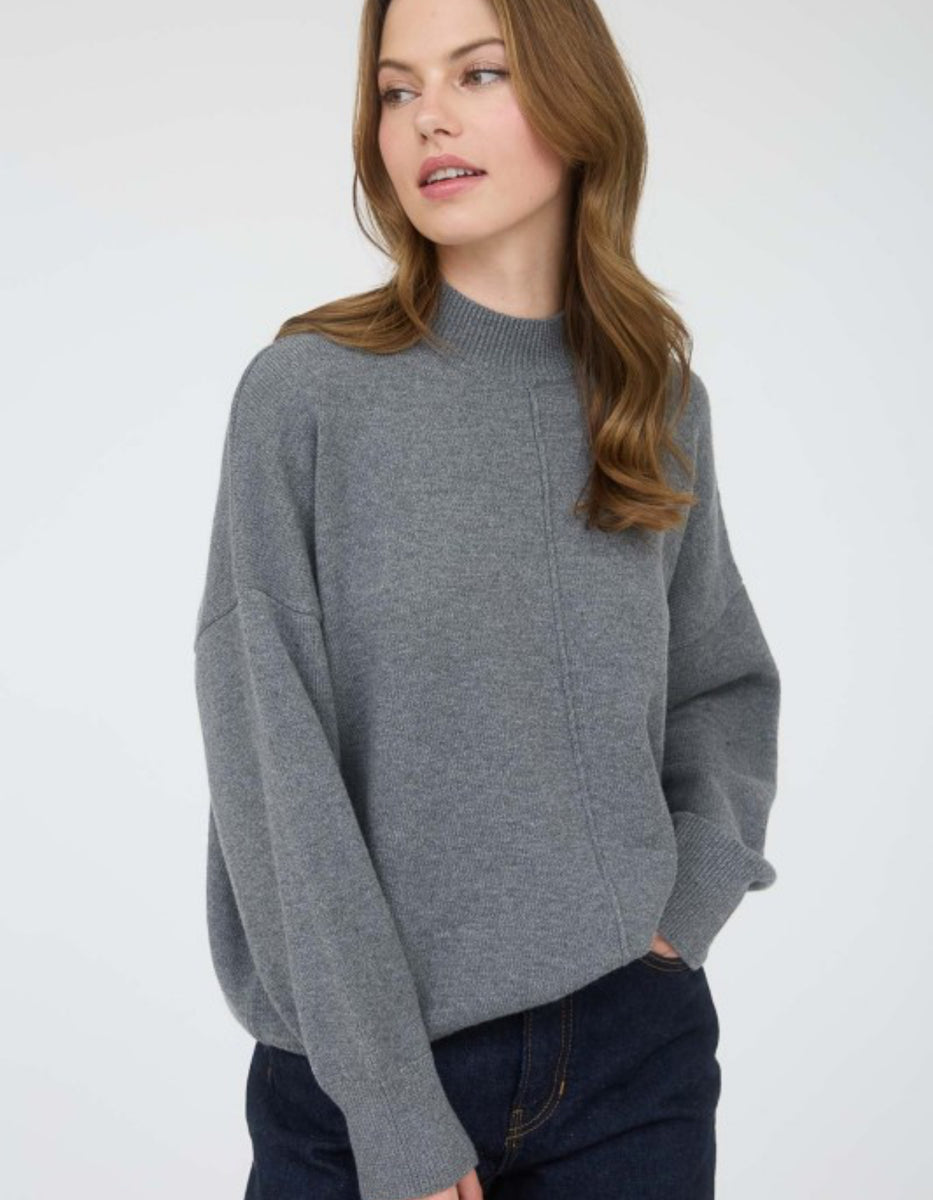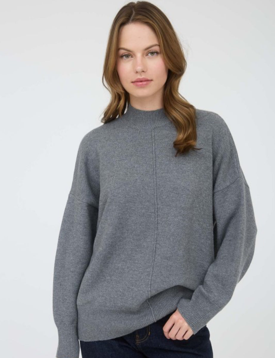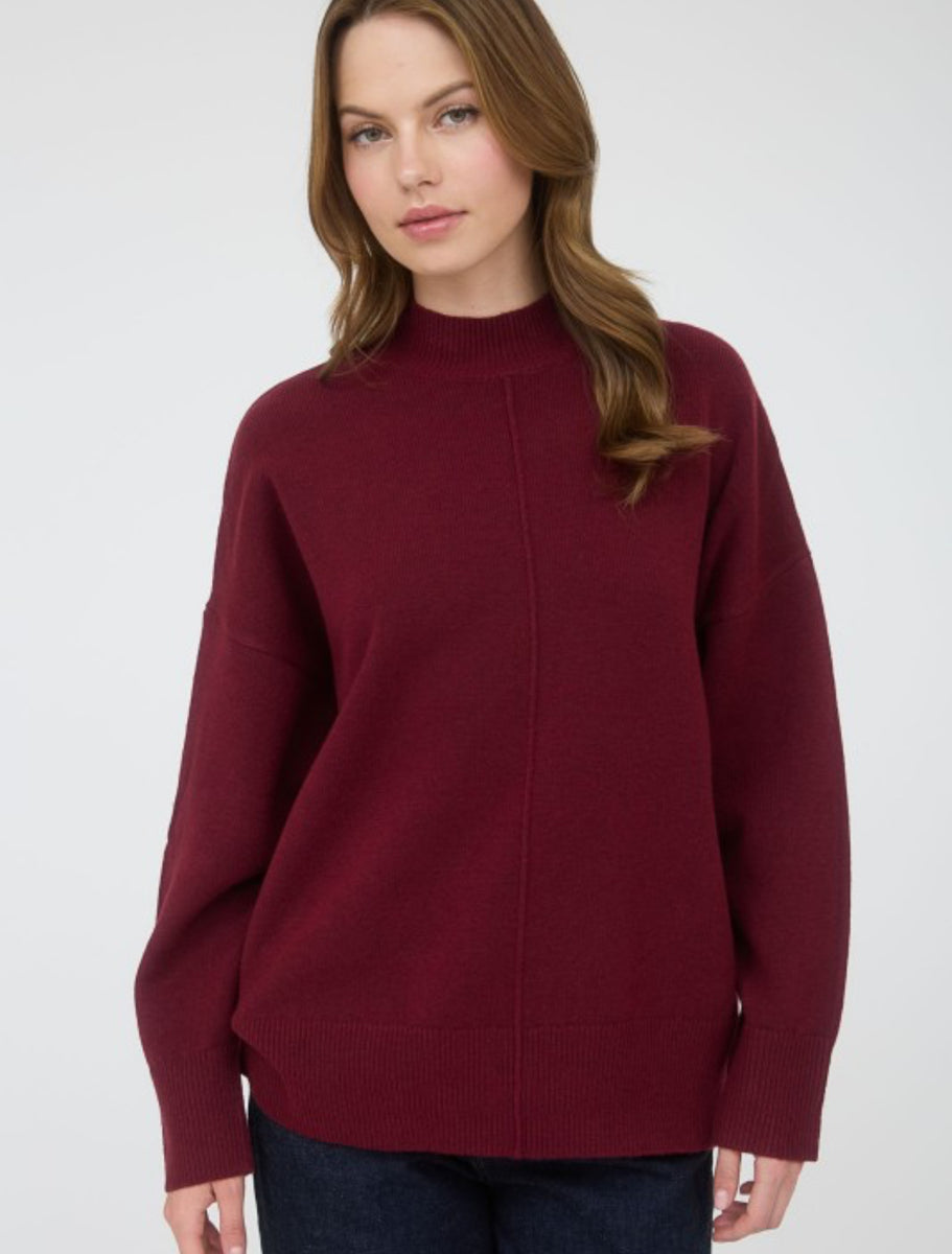 This sweater is a basic, yet stylish choice for your wardrobe. With a gray, burgundy, and tan design, it's versatile and easy to pair with any outfit. The mock neck adds a touch of sophistication and warmth, perfect for cooler weather. Stay cozy and fashionable with the 1960 sweater.