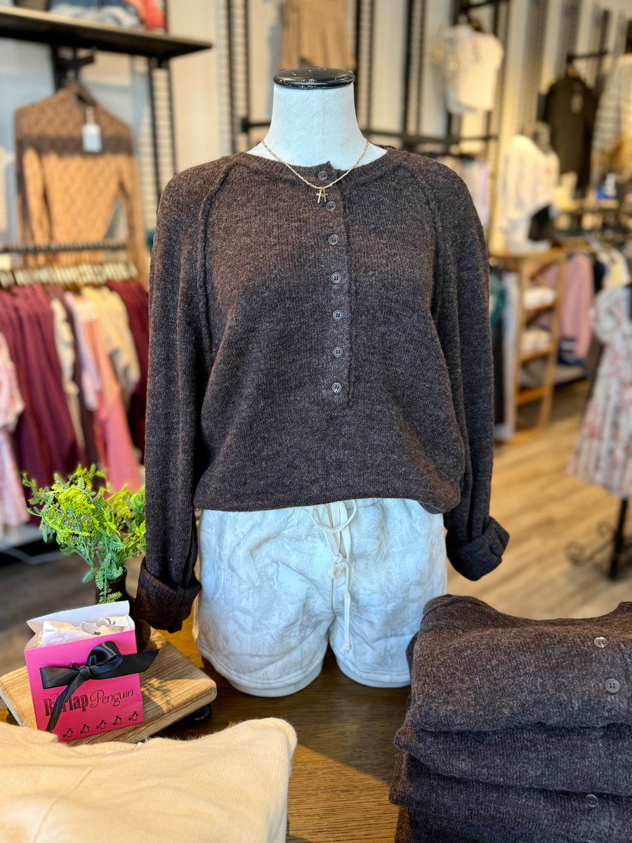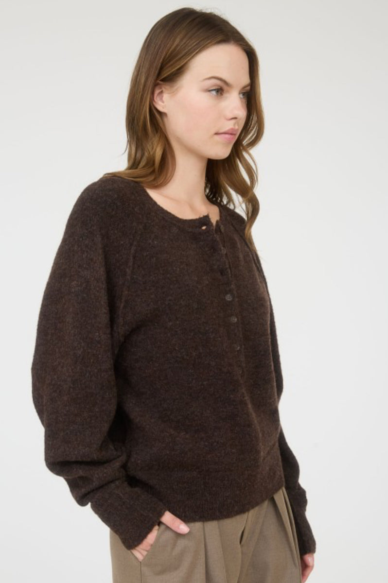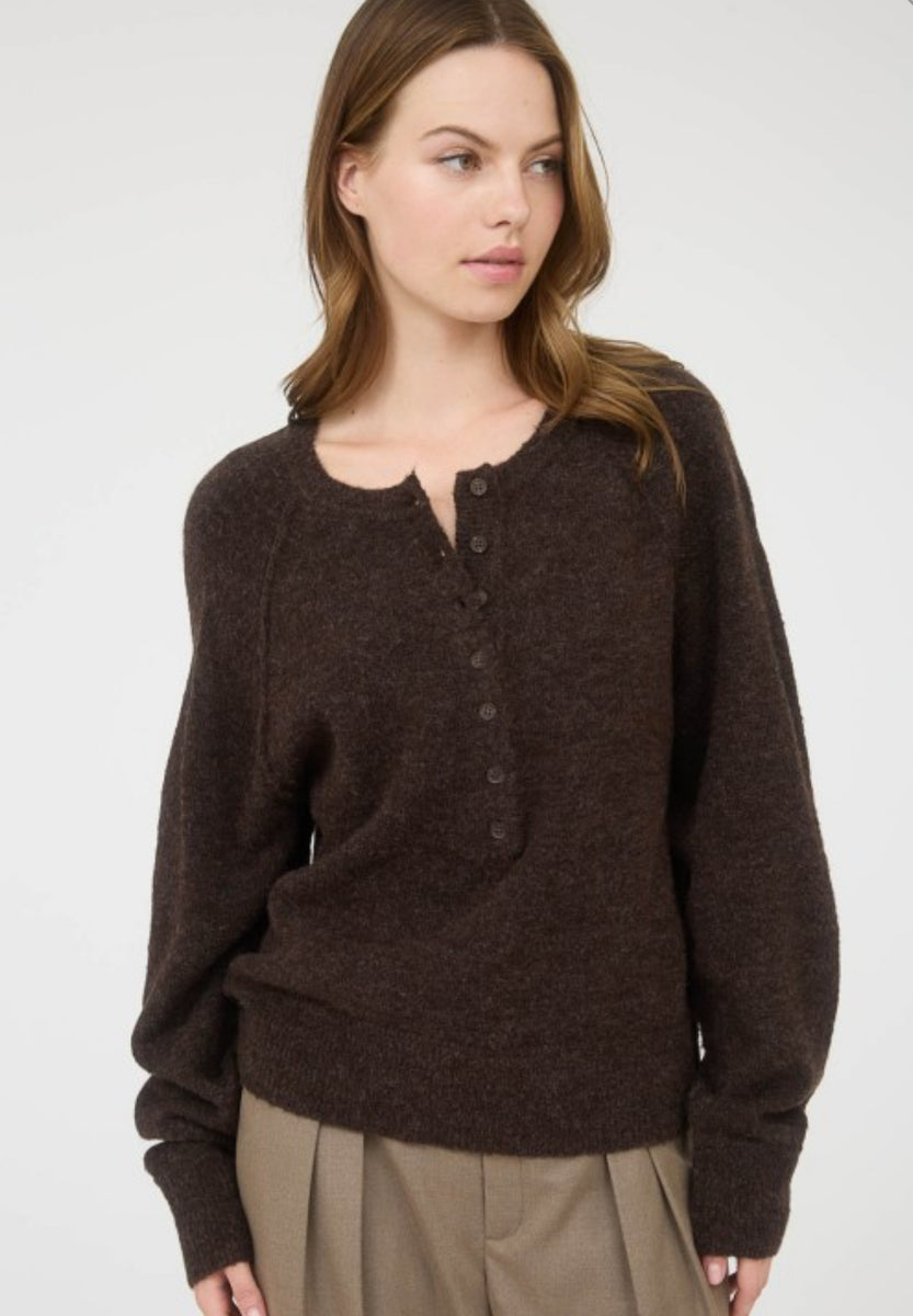 The 1980 Henley sweater is a timeless classic, made with deep brown fabric that exudes elegance. Its comfortable fit ensures that it's true to size, providing both style and comfort in one versatile piece. Perfect for any occasion, it's an essential addition to your wardrobe.