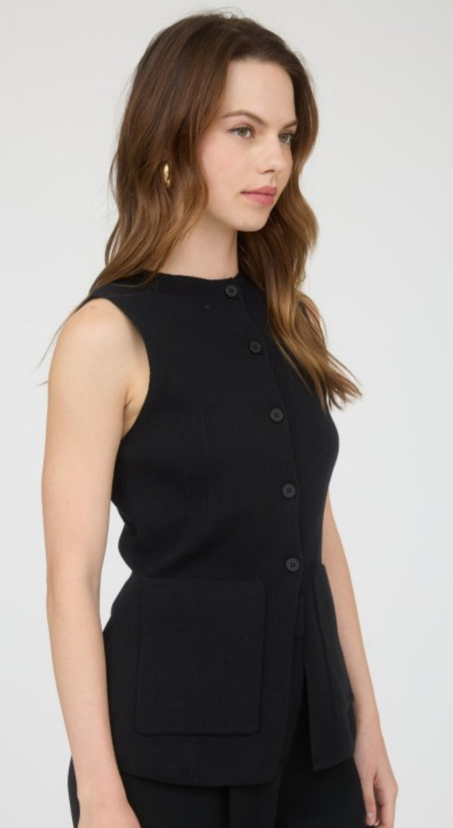This versatile black button-up long vest is a must-have addition to your wardrobe. Made with high-quality materials, it offers both style and comfort. Perfect for layering, this vest can easily elevate any outfit. Stay chic and on-trend with the 2004 vest.