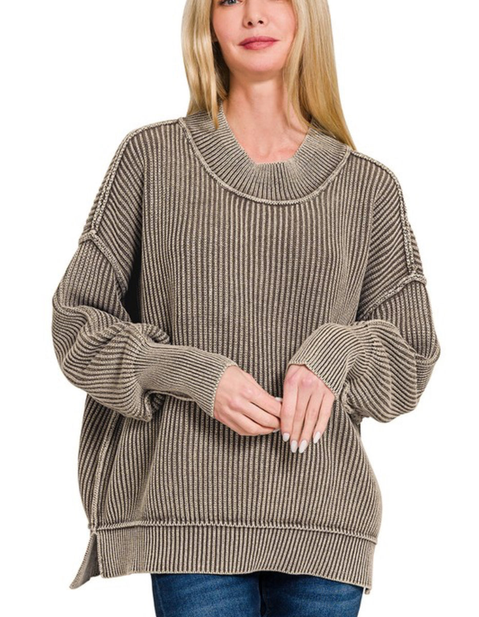This ribbed pullover sweater, in a warm mocha brown tone, offers a relaxed fit for ultimate comfort. Perfect for cozy winter days, this sweater will keep you warm and stylish.