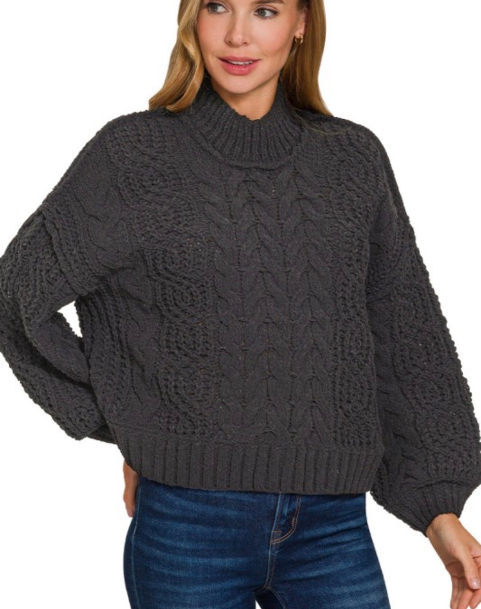 This black cable knit sweater is perfect for the colder months. Made with durable materials, it will keep you warm while also staying stylish. Pair it with your favorite jeans or dress it up for a more professional look. A must-have addition to your wardrobe.