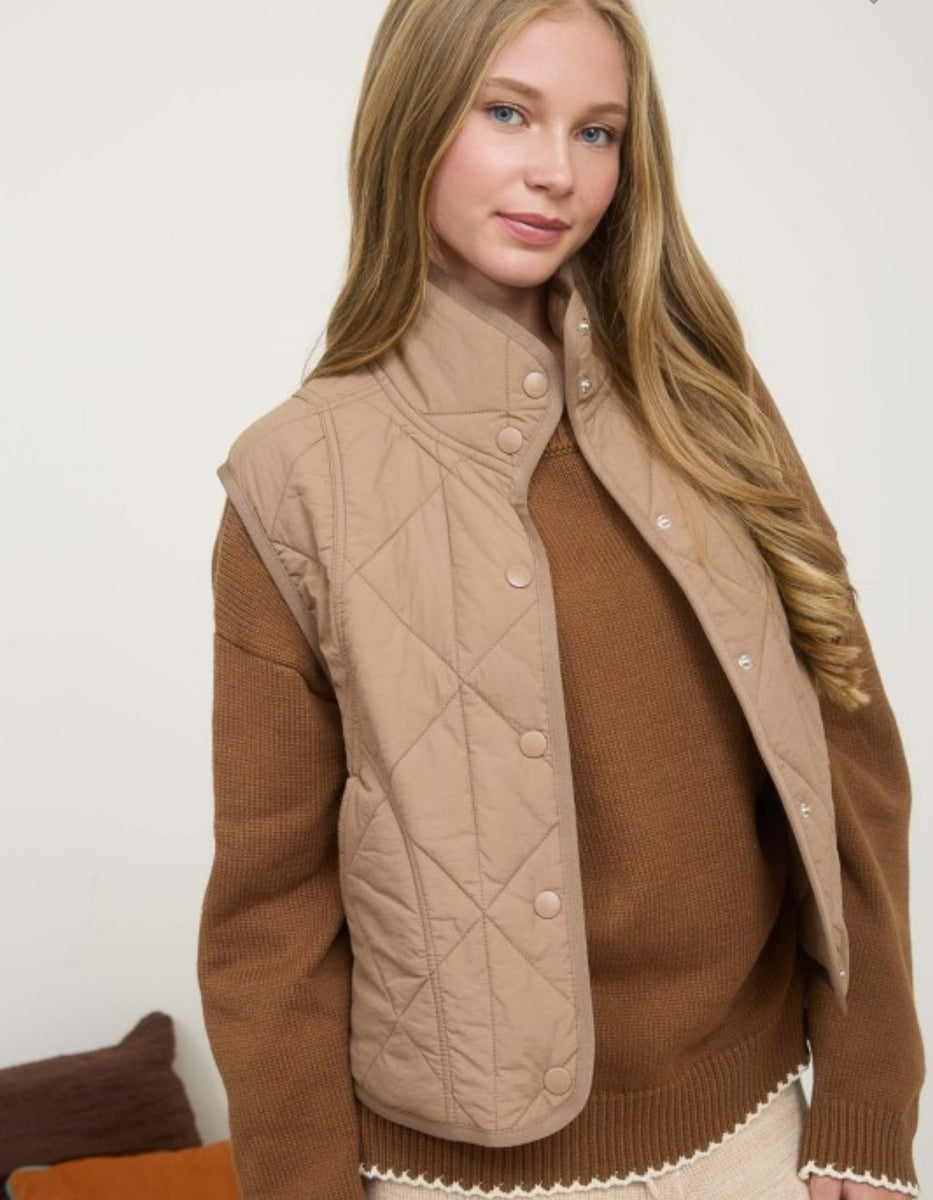 Add the perfect finishing touch to your outfit with our 2726 Tan Quilted Snap Button Vest. Keep warm and stylish with this versatile piece that can be dressed up or down. The snap button closure adds convenience and the quilted design adds a touch of sophistication.