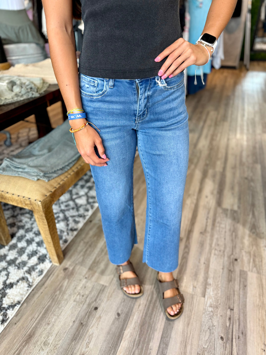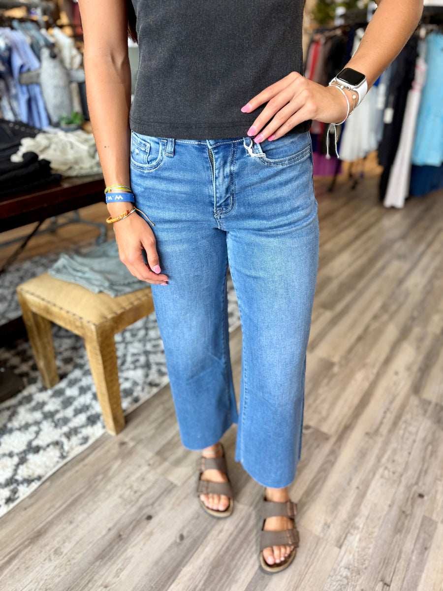 Get ready to rock your casual style with our Vervet high rise crop jeans! Designed by Flying Monkey, these jeans feature a comfortable 10" rise and a stylish 27" inseam. Elevate your wardrobe with the perfect combination of fashion and comfort.