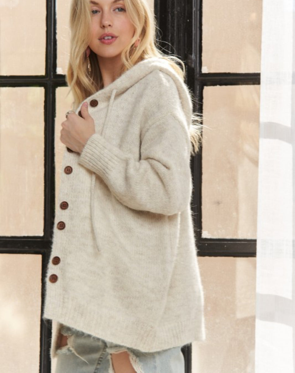 Wrap yourself in cozy comfort with our 3847 oversized hoodie cardigan. Made with soft ivory or gray fabric, this button down cardigan is perfect for casual days or nights in. The relaxed fit adds an extra layer of comfort, making it a must-have addition to your wardrobe.