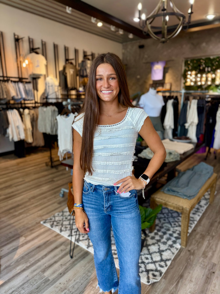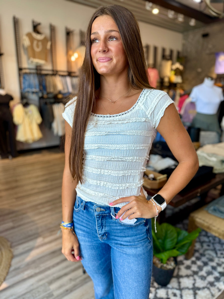 Add a touch of elegance to your wardrobe with our ivory lace tee. Perfect for any occasion, this tee is made from high-quality lace and is designed to provide both style and comfort. Step out in confidence with this must-have piece.