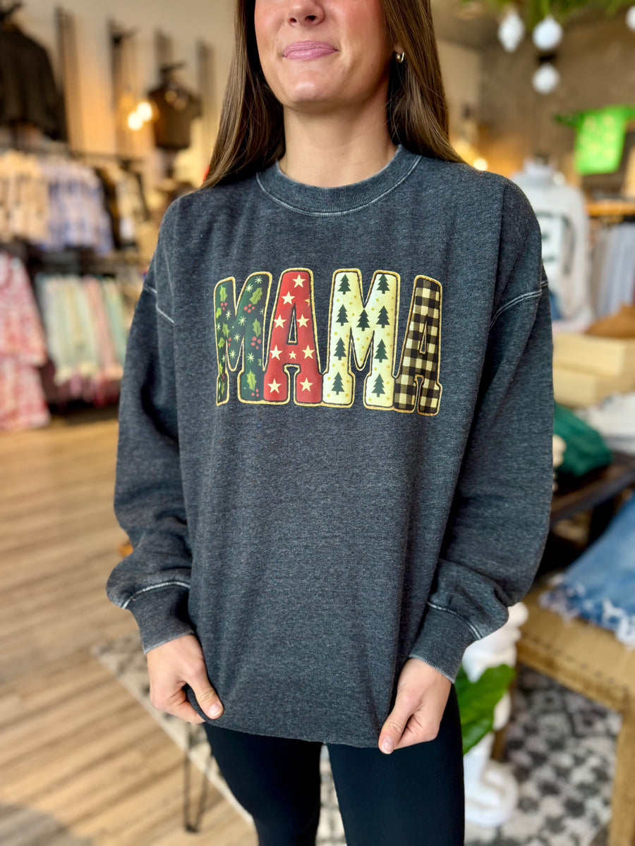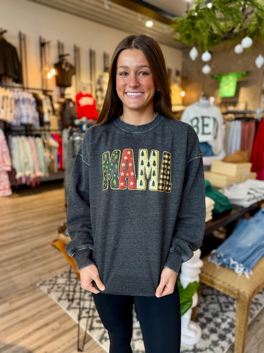 Stay cozy and festive this holiday season with our Charcoal Mama sweatshirt. Its unique charcoal burnout design and Christmas mana graphic make it the perfect addition to your winter wardrobe. Embrace comfort and style with this must-have piece.