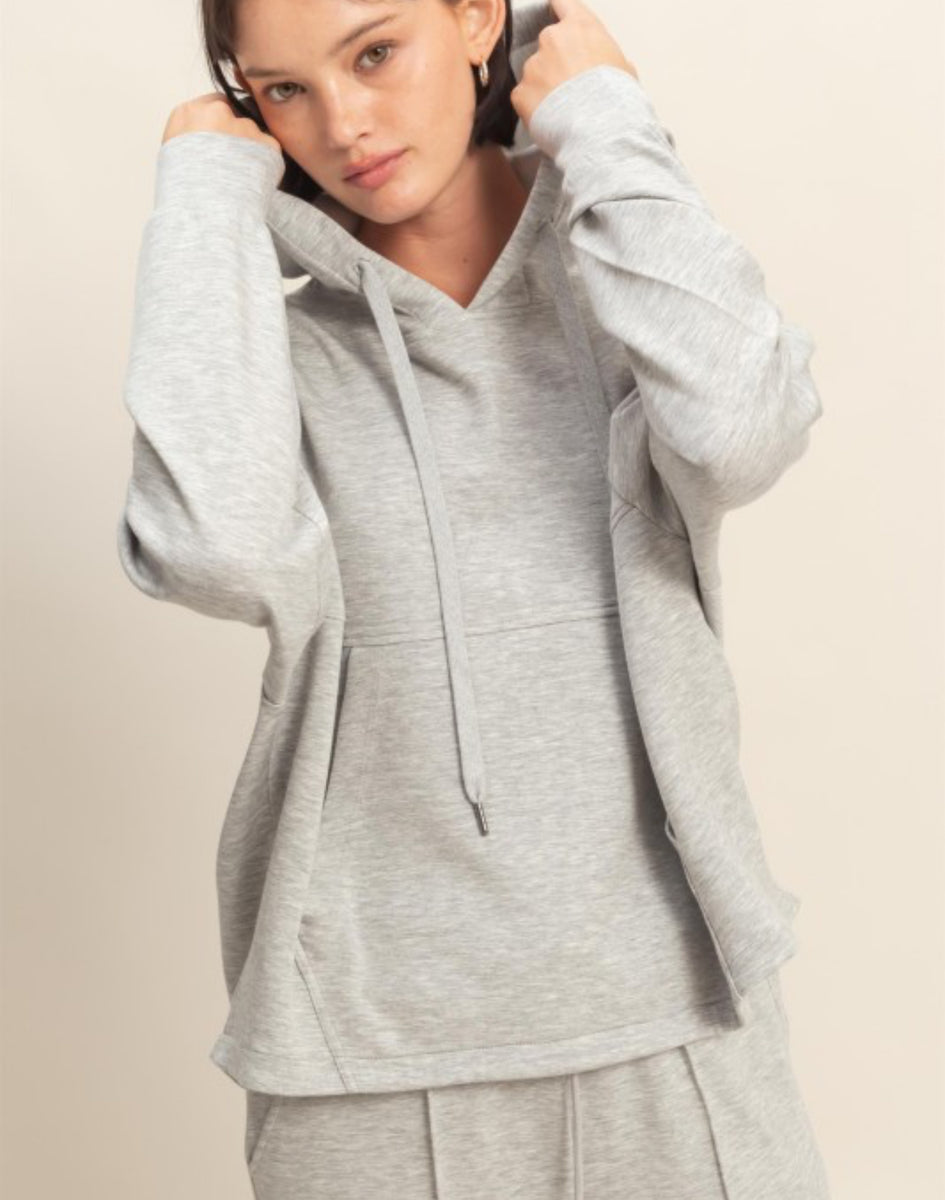 Wrap yourself in comfort with our E557 hoodie pullover. Available in heather gray or black, this scuba hoodie offers a super soft feel and a true-to-size fit for ultimate comfort. Perfect for any activity, this hoodie is the essential addition to your wardrobe.