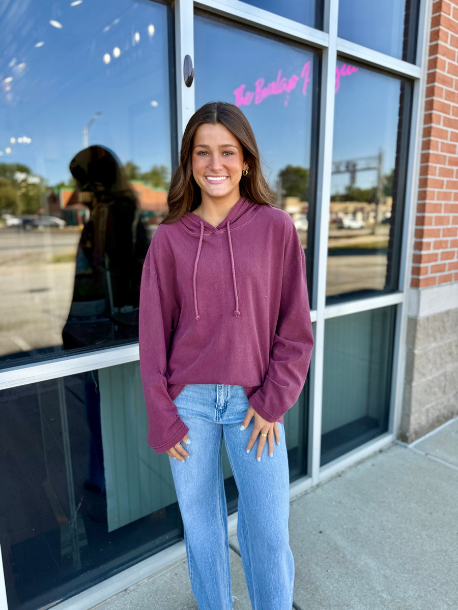This dark cherry tee hoodie combines comfort and style with its relaxed fit design. Keep warm and trendy with this must-have addition to your wardrobe.