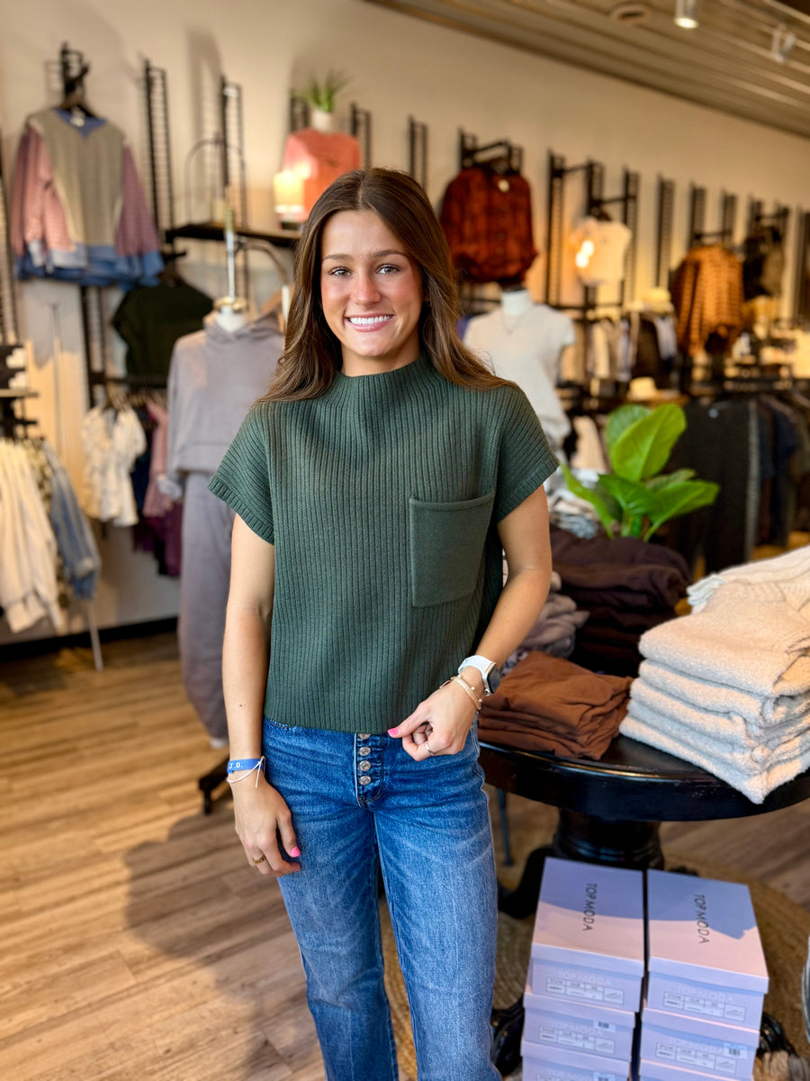 Stay cozy and stylish with our Ft1013 ribbed short sleeve sweater in an ivory and dark green color. Perfect for any occasion, this sweater will keep you comfortable and fashionable all day long.