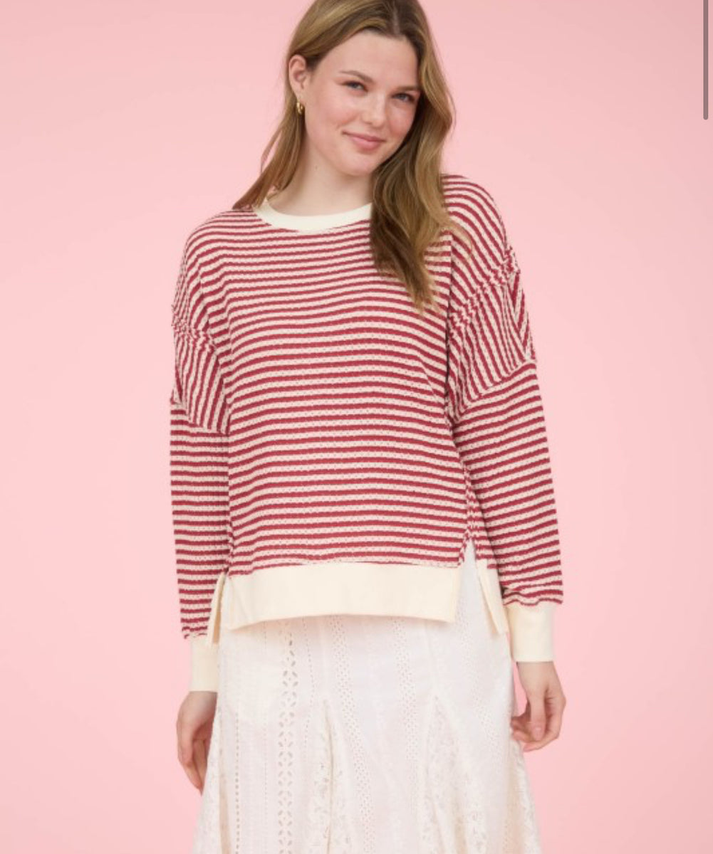 Effortlessly stylish and comfortable, the St1004 is a relaxed fit pullover featuring a timeless red and ivory stripe pattern. Perfect for any casual occasion, this pullover adds a touch of sophistication to your everyday look. Stay cozy and fashionable with St1004.
