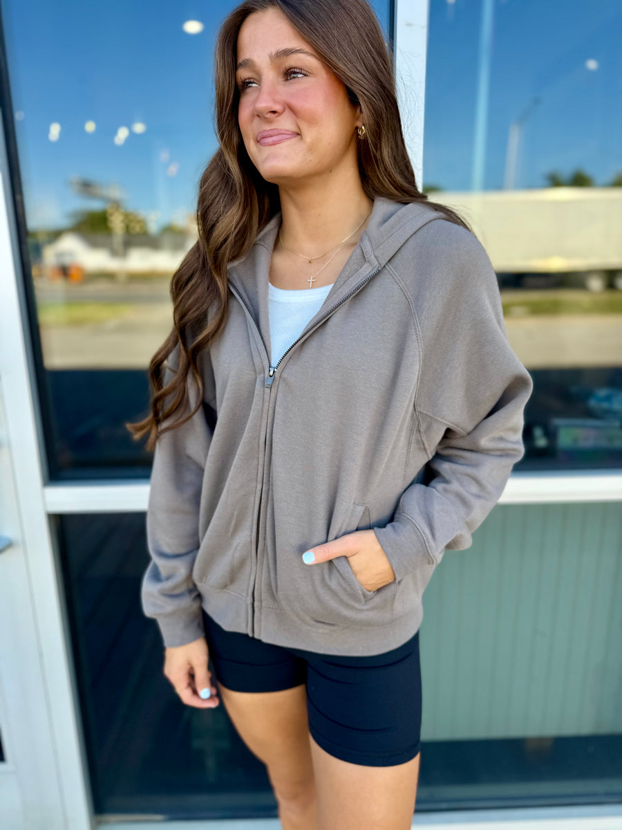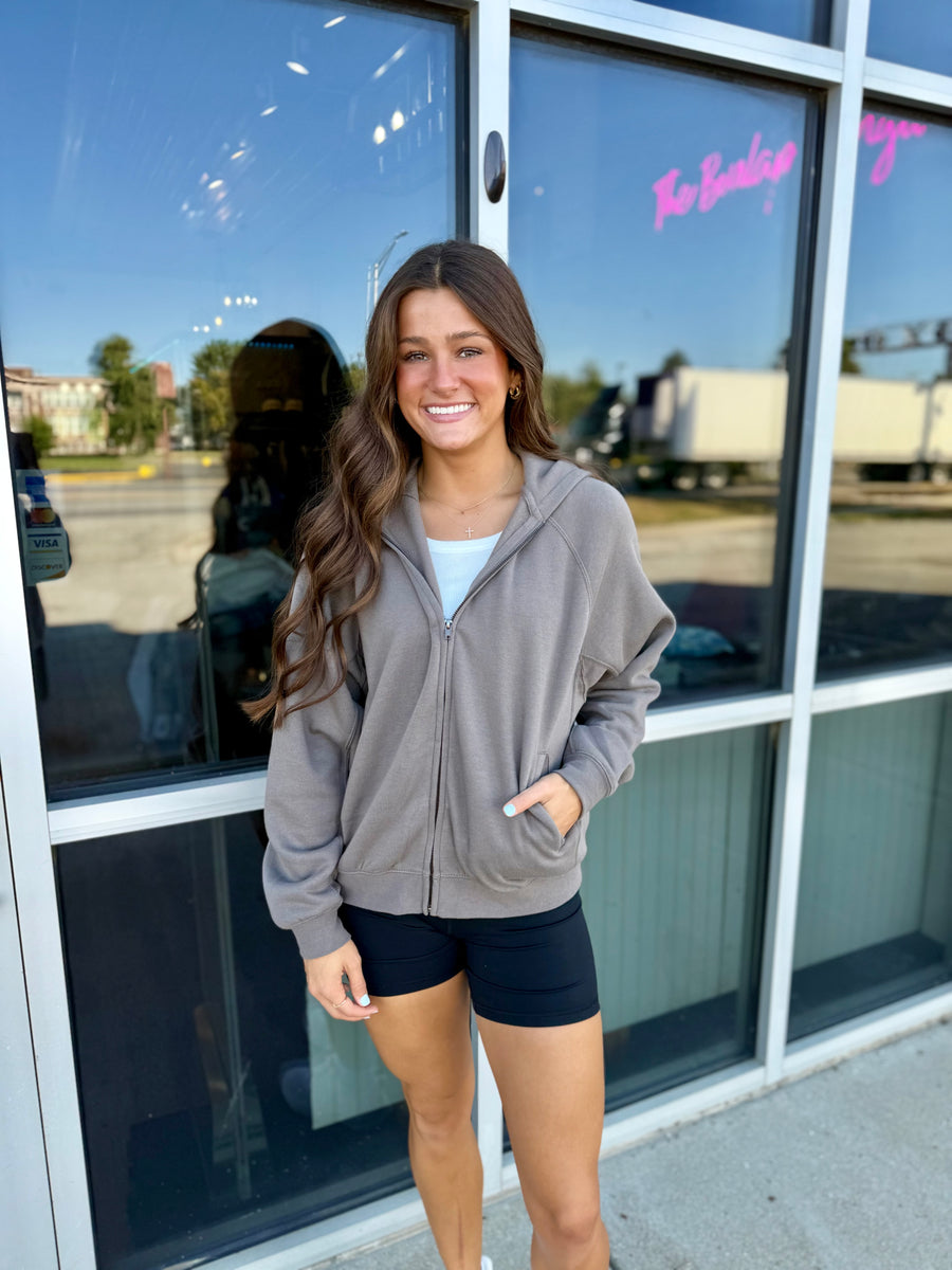 Stay cozy and stylish with our basic zip up hoodie sweatshirts. Available in grey and brown, they are perfect for any casual occasion. Made for comfort and practicality, our sweatshirts are a must-have addition to your wardrobe.