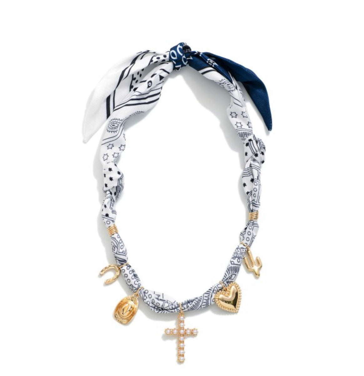 Bandana Necklace Featuring Pearls And Western Charms- Approximately 20" L