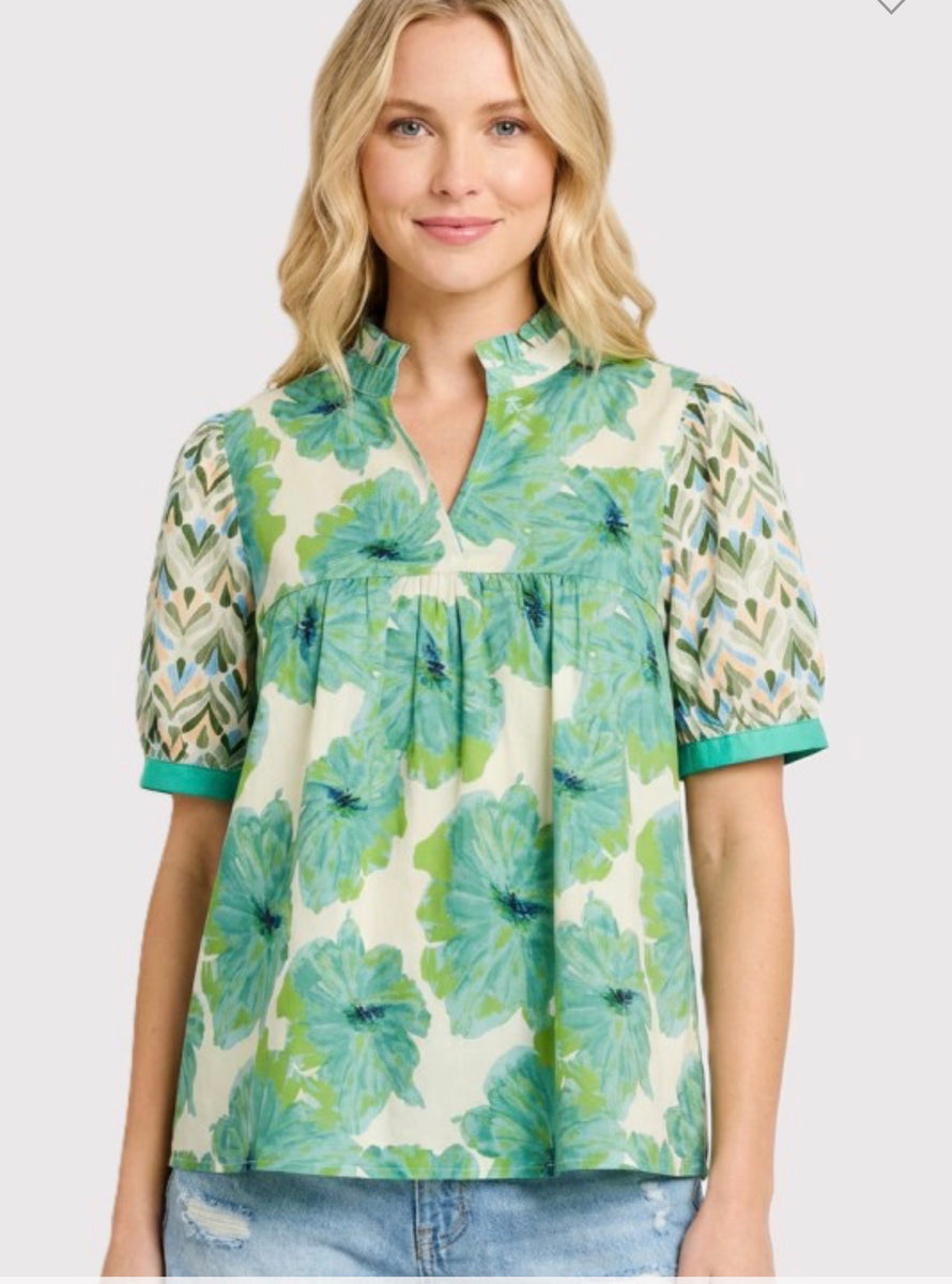 Elevate your wardrobe with the 20668 green leaf print blouse. Its refreshing design adds a touch of nature-inspired style, making it perfect for casual outings or work. The lightweight fabric ensures comfort all day, while the vibrant print keeps your look effortlessly chic.