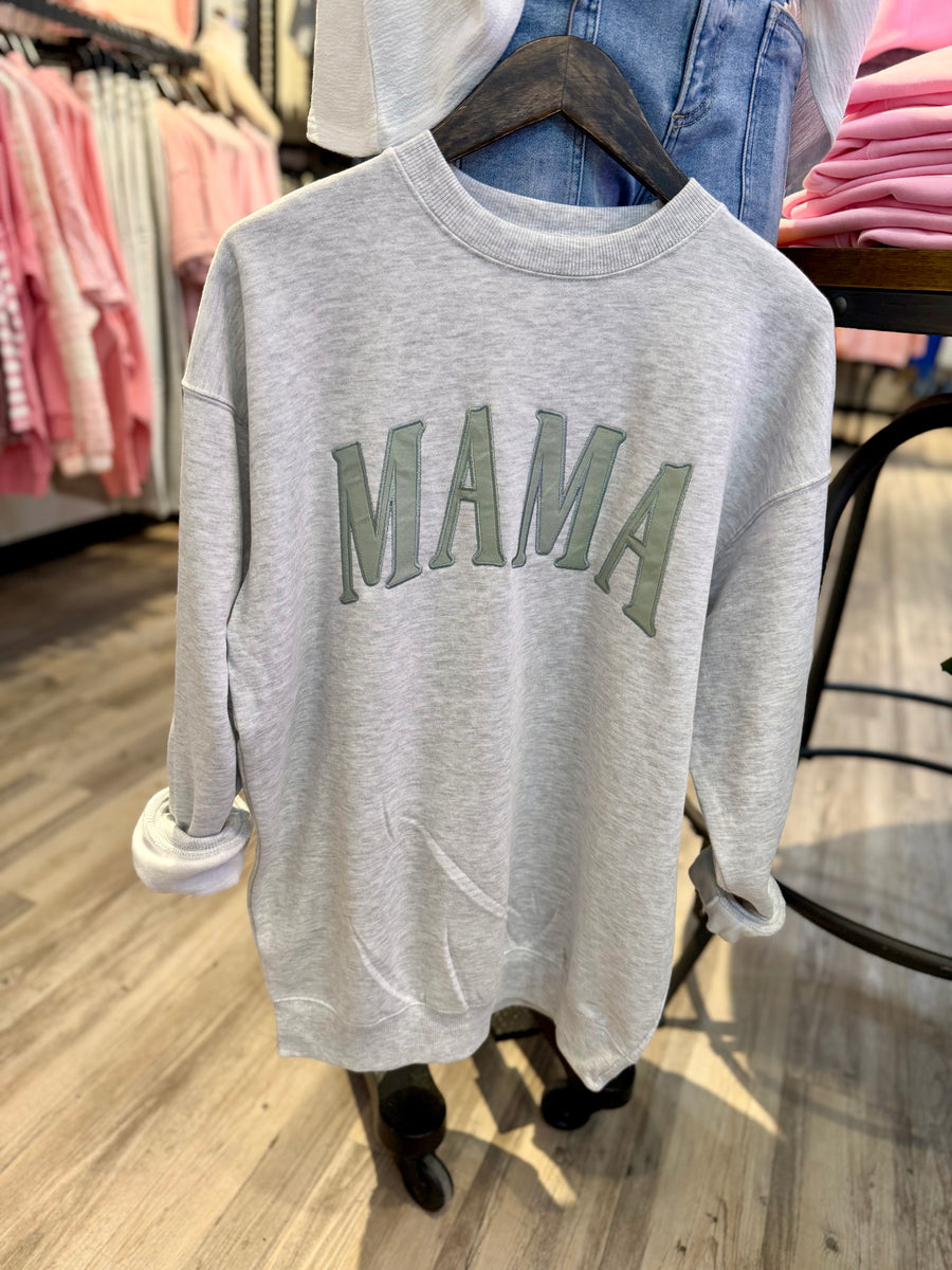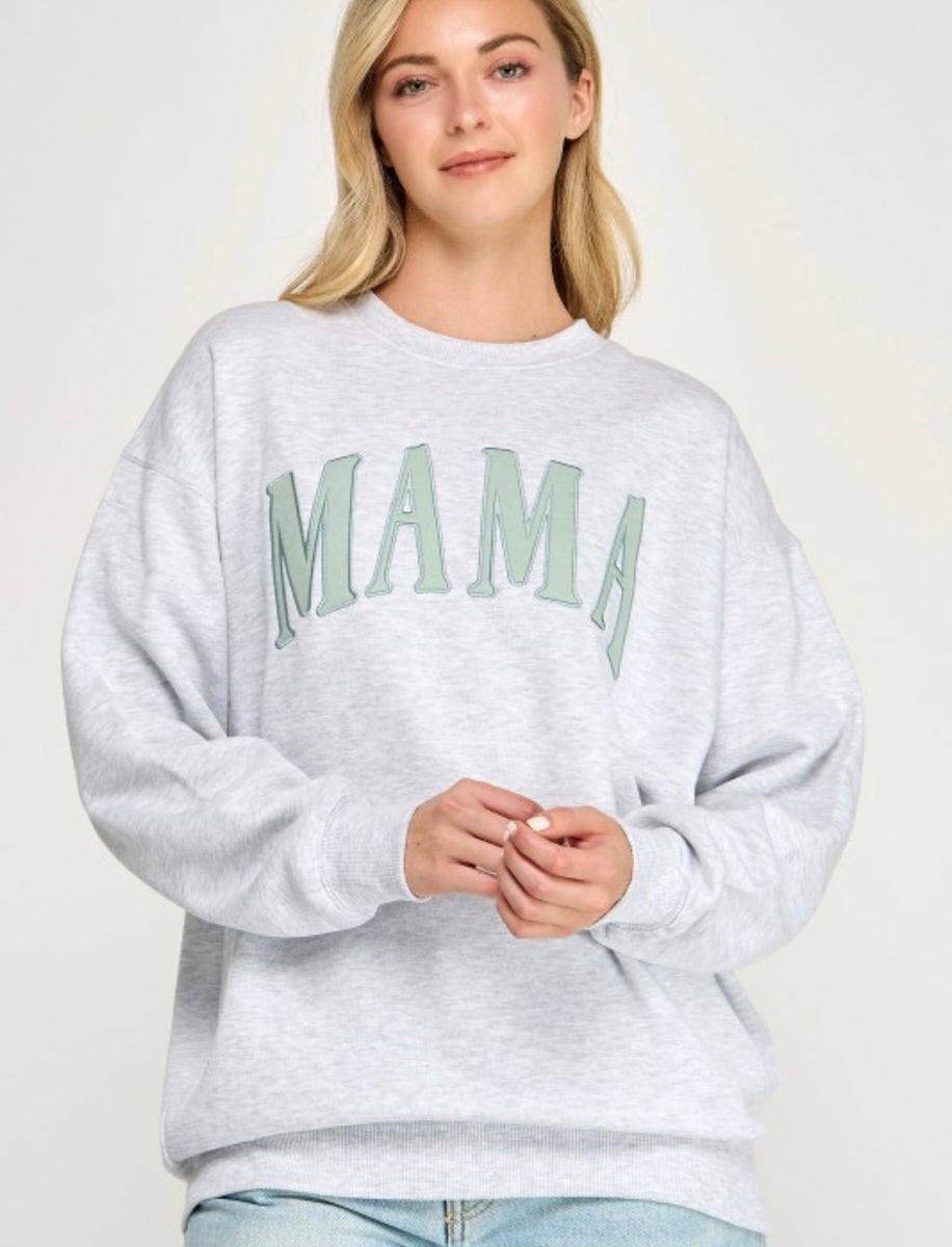 Stay cozy and stylish with the 214 sweatshirt. Made from soft heather gray fabric, it features a charming "mama" embroidered patch, perfect for casual outings or lounging at home. You'll love the comfort and warmth it brings to your wardrobe.