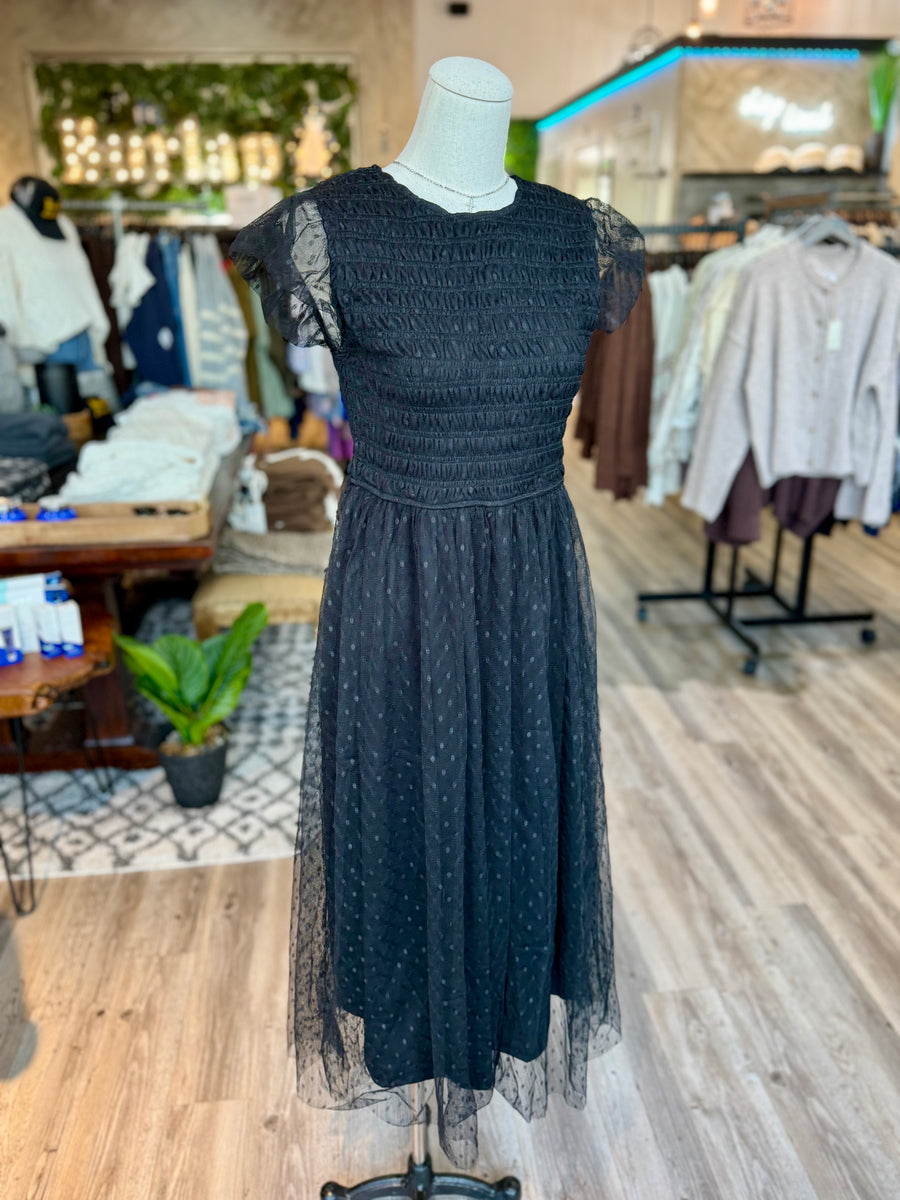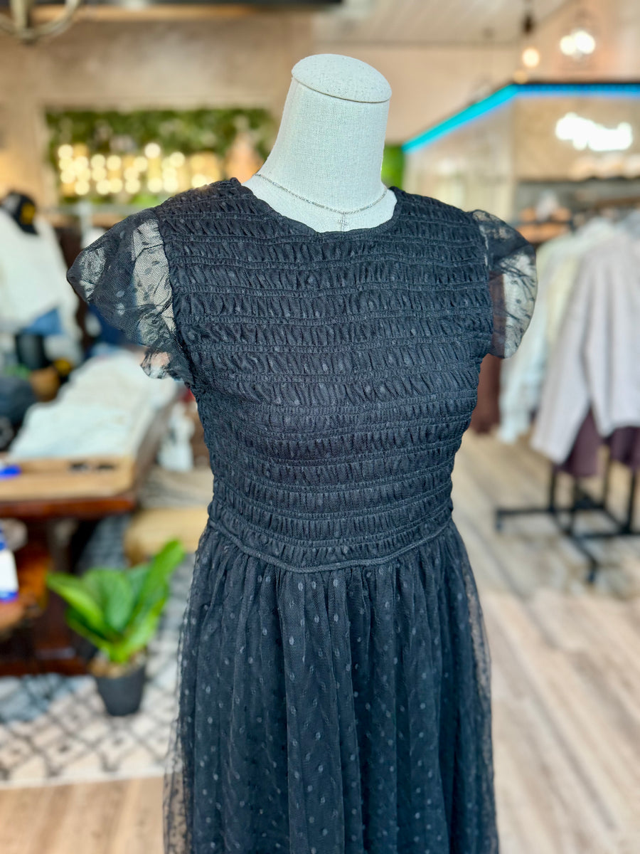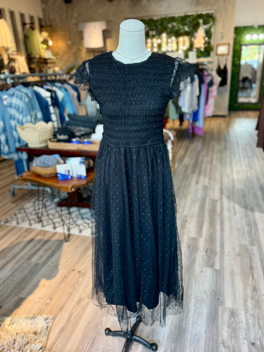 Elegant and versatile, our black polka dot chiffon layered dress is the perfect addition to your wardrobe. This maxi midi dress fits true to size and is designed to flatter your figure with its flowy silhouette. Dress it up or down for any occasion.