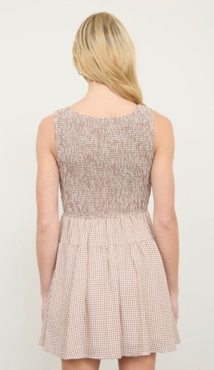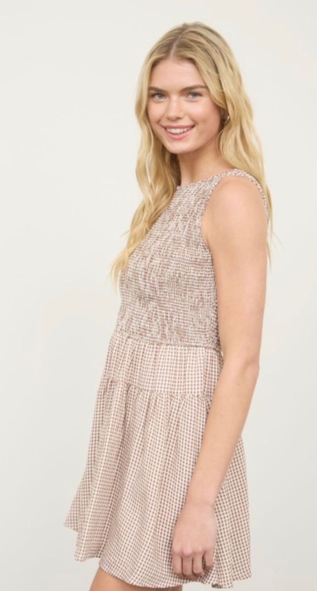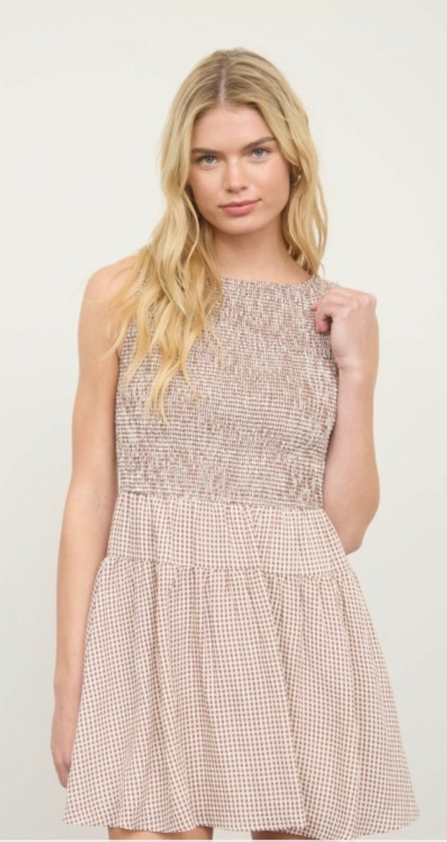 This versatile gingham smocked top dress, available in black or brown, offers a flattering fit and timeless style. Its soft fabric ensures comfort, making it perfect for casual outings or dressier occasions. Enjoy effortless elegance with this essential addition to your wardrobe.