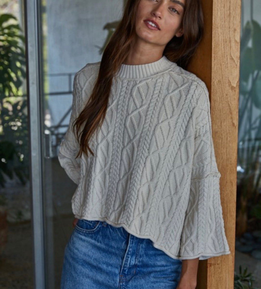 The W2280 sweater is an ivory oversized style, featuring 3/4 sleeves for a relaxed look. Its comfortable fit makes it perfect for layering, ensuring you stay cozy and stylish year-round.